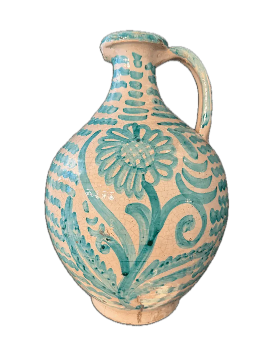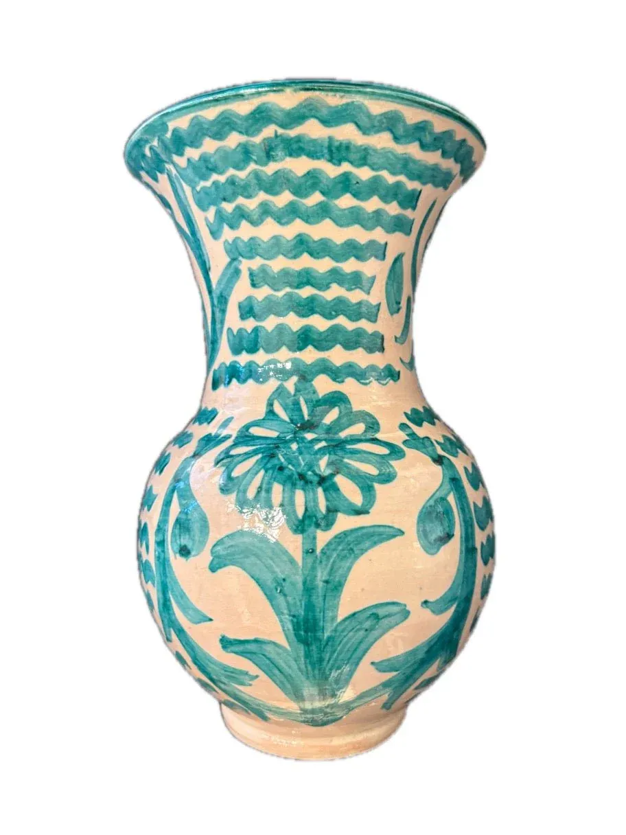Jarrón Redondo Grande con Asa de Cerámica de Fajalauza