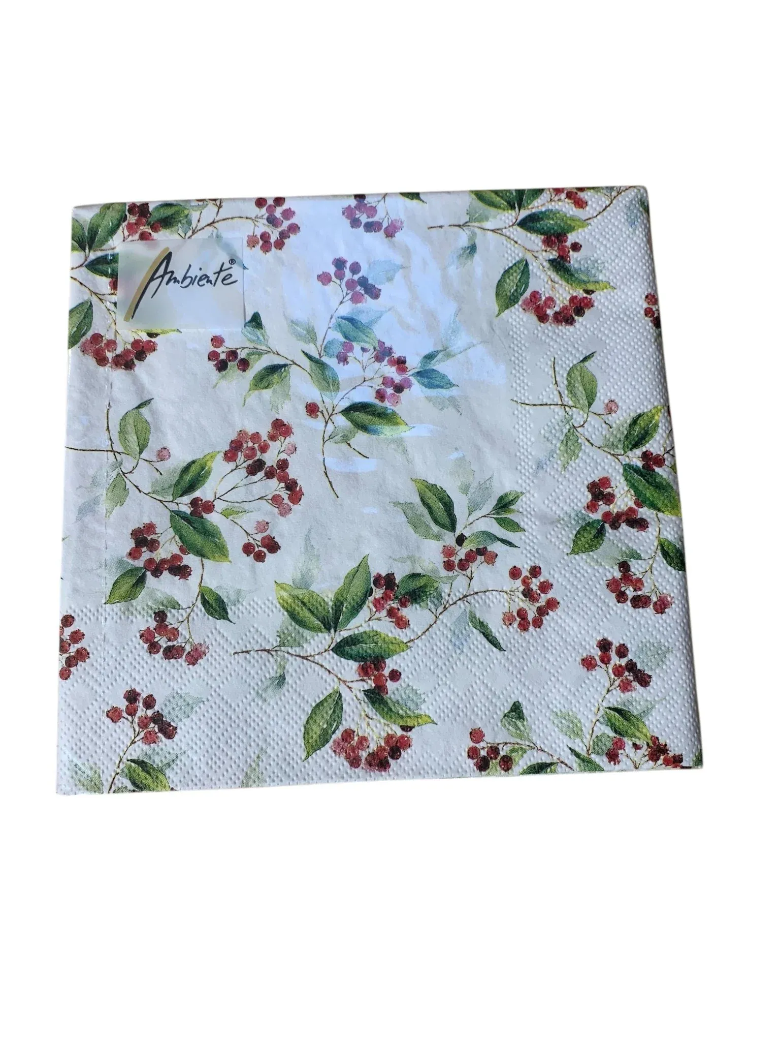 Set de Servilletas Flores Rojas y Hojas Verdes