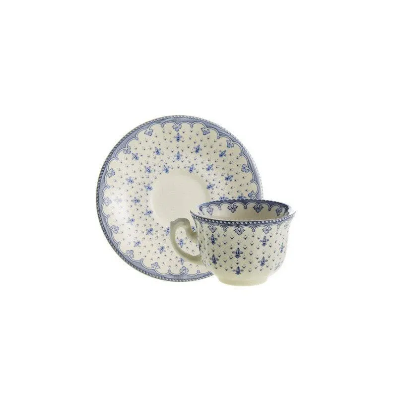 Set de 4 Tazas de Café con Platillos La Cartuja Colección Flor de Lis Azul