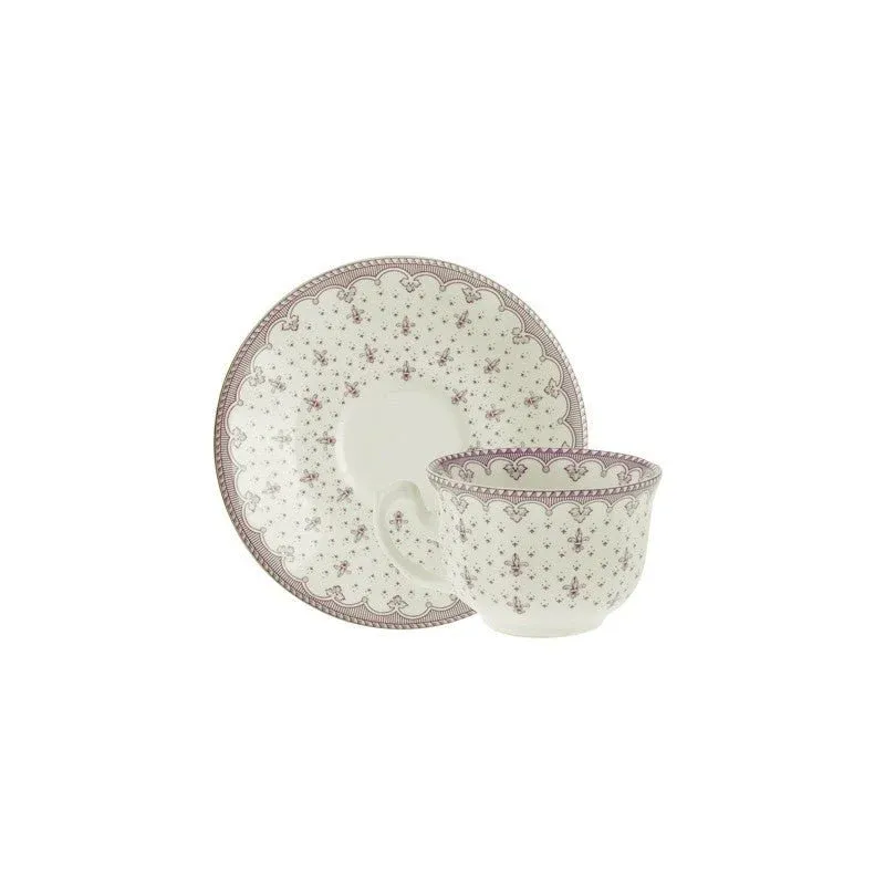 Set de 4 Tazas de Café con Platillos La Cartuja Colección Flor de Lis Rosa