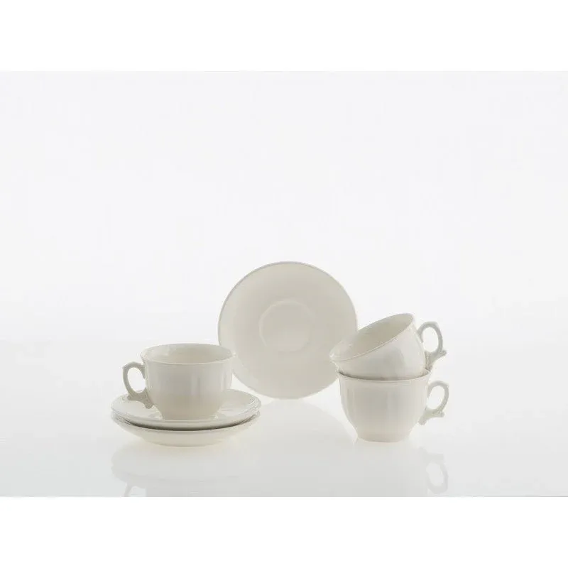Set de 4 Tazas de Té con Platillos Colección Aurora Blanca