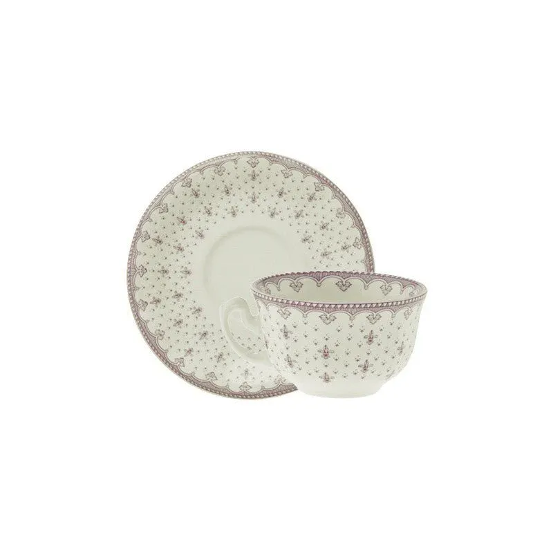 Set de 4 Tazas de Té con Platillos Colección Flor de Lis Rosa