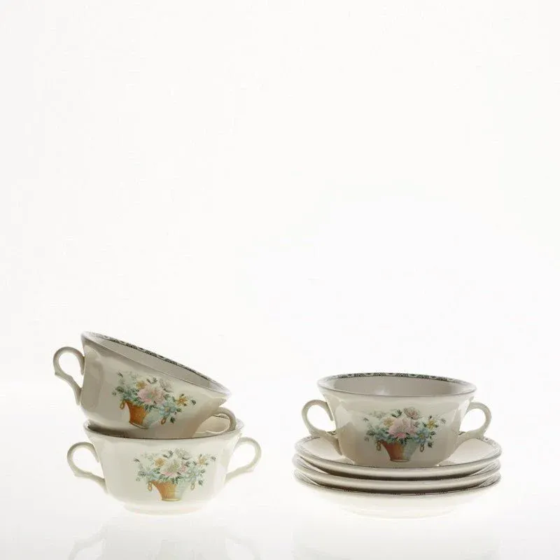 Set de 6 Tazas de Consomé con Platillos La Cartuja Colección Canasto Floral