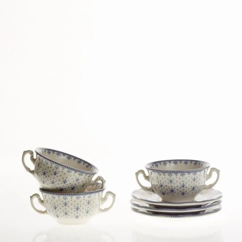 Set de 6 Tazas de Consomé con Platillos La Cartuja Colección Flor de Lis Azul