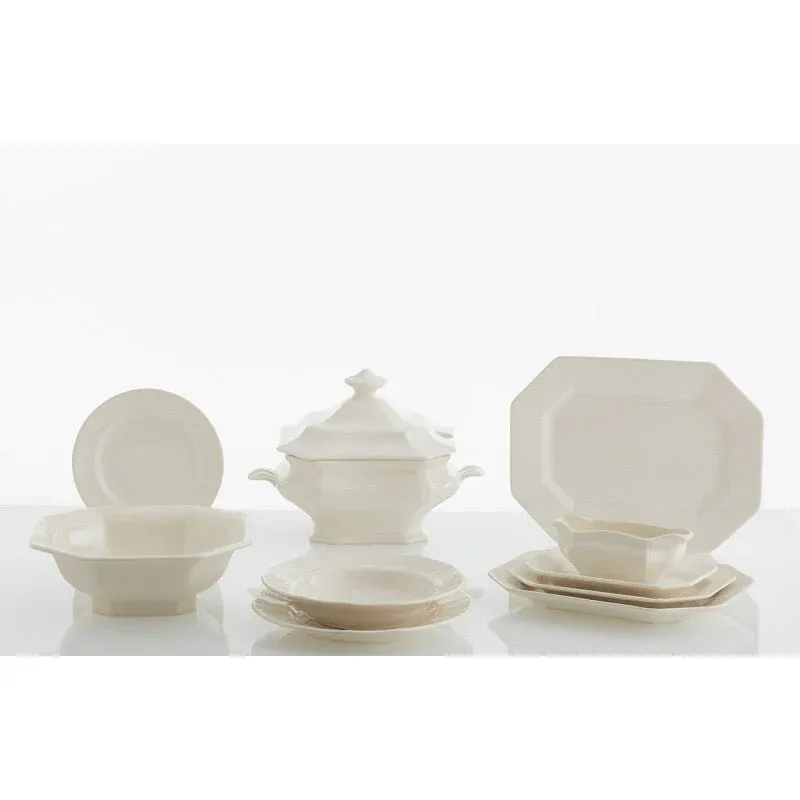 Vajilla La Cartuja de Sevilla Colección Ochavada Blanca 56 Piezas