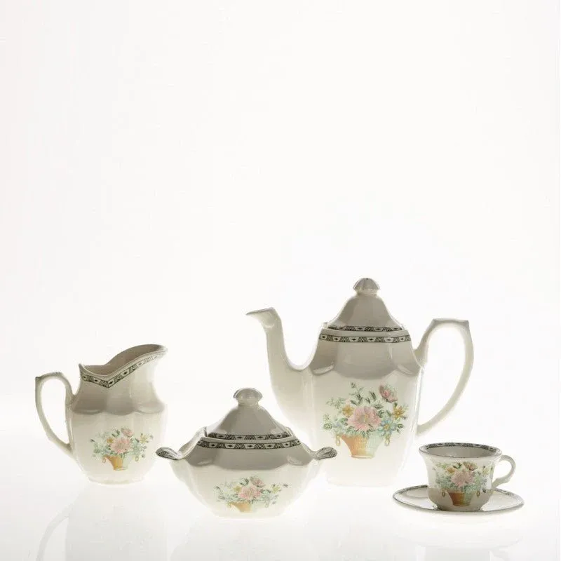 Juego de Café de 27 Piezas La Cartuja de Sevilla Colección Canasto Floral