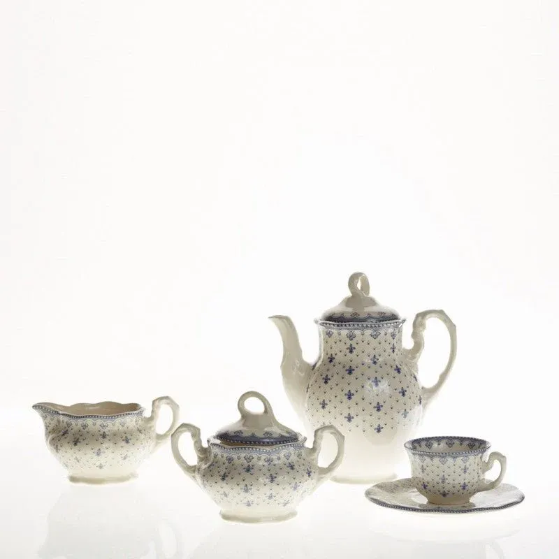 Juego de Café de 27 Piezas La Cartuja de Sevilla Colección Flor de Lis Azul