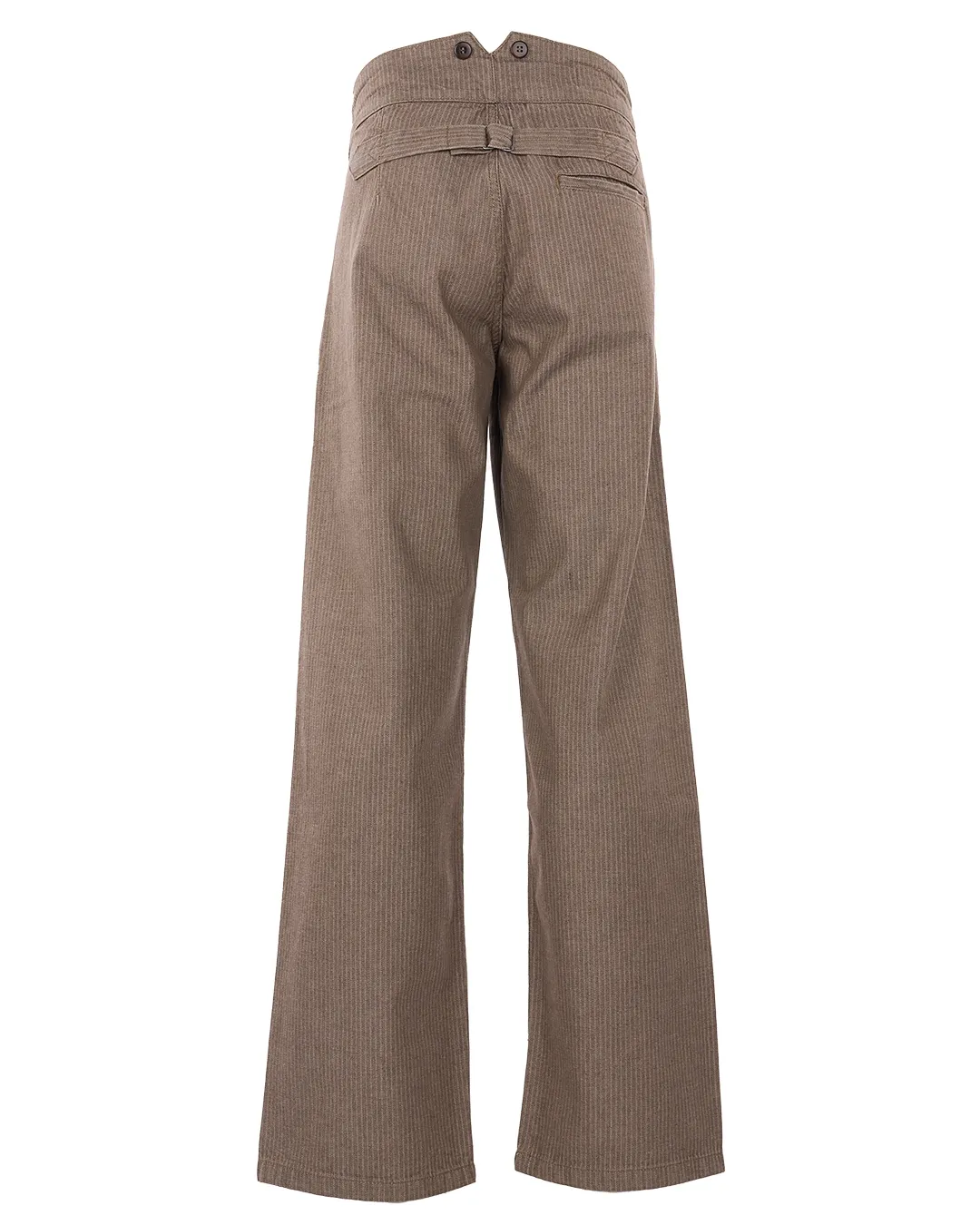 Todo esto se refleja en nuestro pantalón Hauler 1905. El corte es muy amplio y la cinturilla muy alta. Esto permite una libertad de movimiento óptima. Tienen botones para sujetar tirantes. Entonces, como ahora, esta es una buena manera de garantizar que los pantalones no se deslicen del cuerpo.