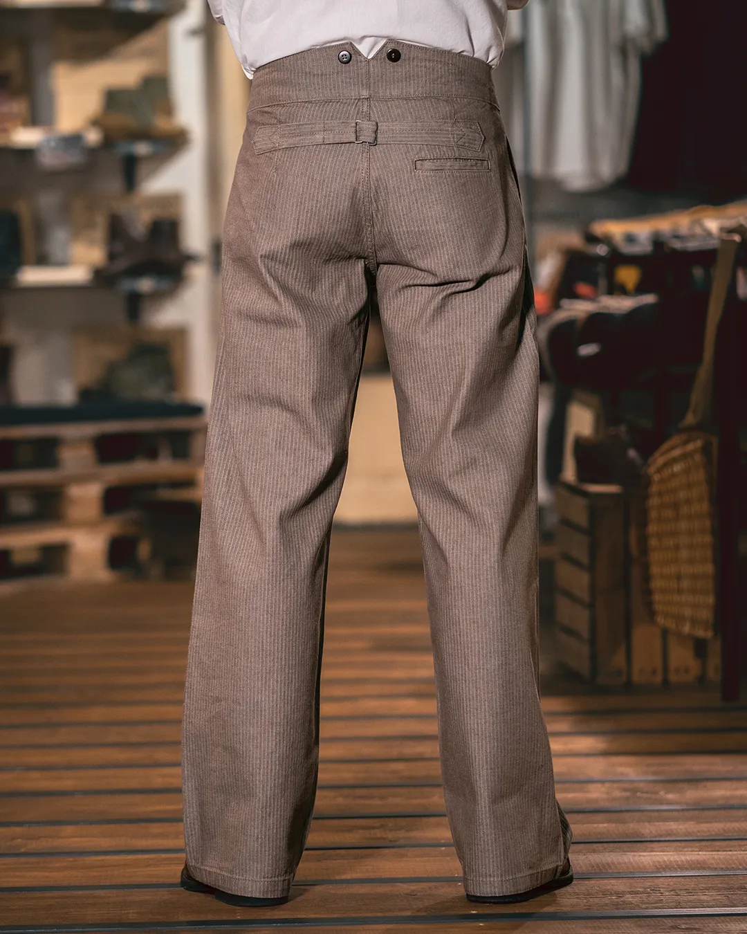 Hemos utilizado un orillo en espiga de alta calidad para el 1905 Hauler Pant HBT marrón.