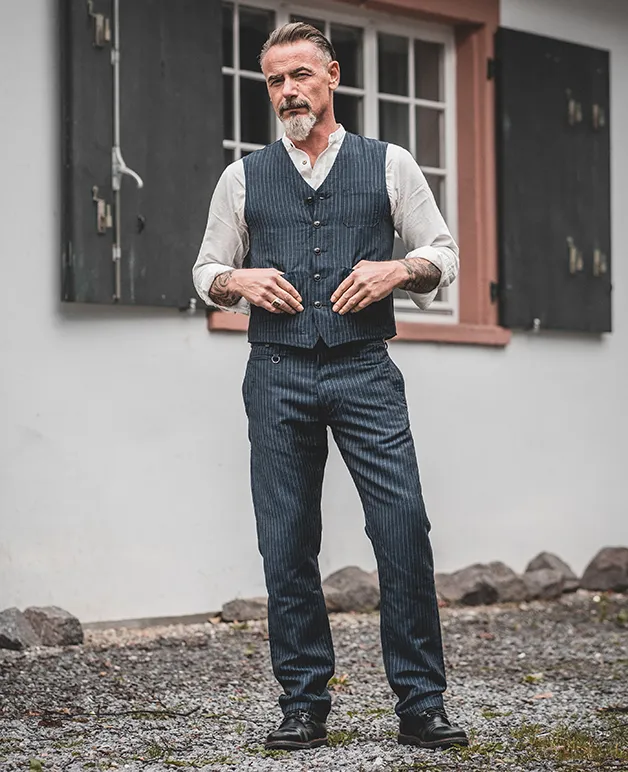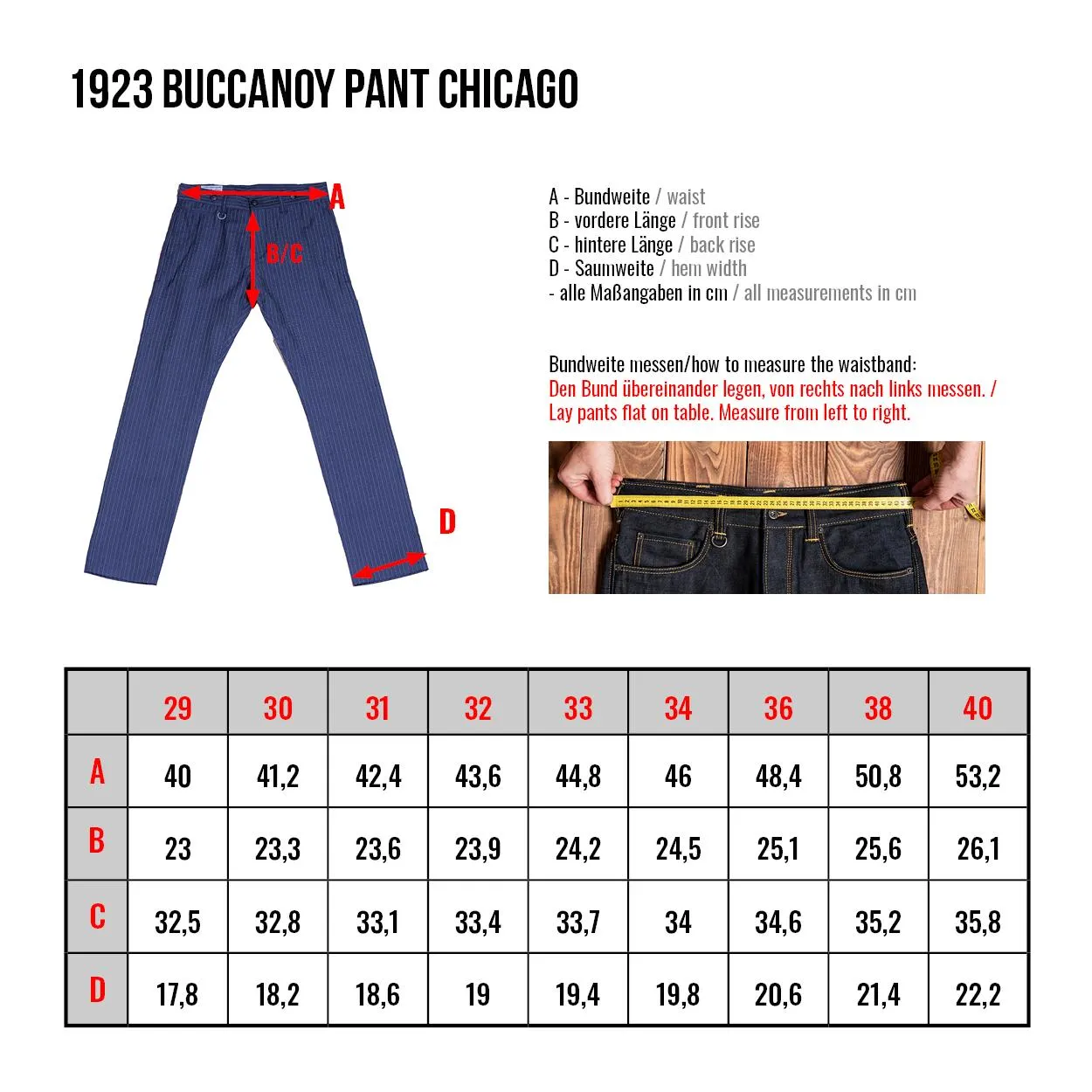 Los siguientes detalles caracterizan nuestro 1923 Buccanoy Pant Chicago azul.
