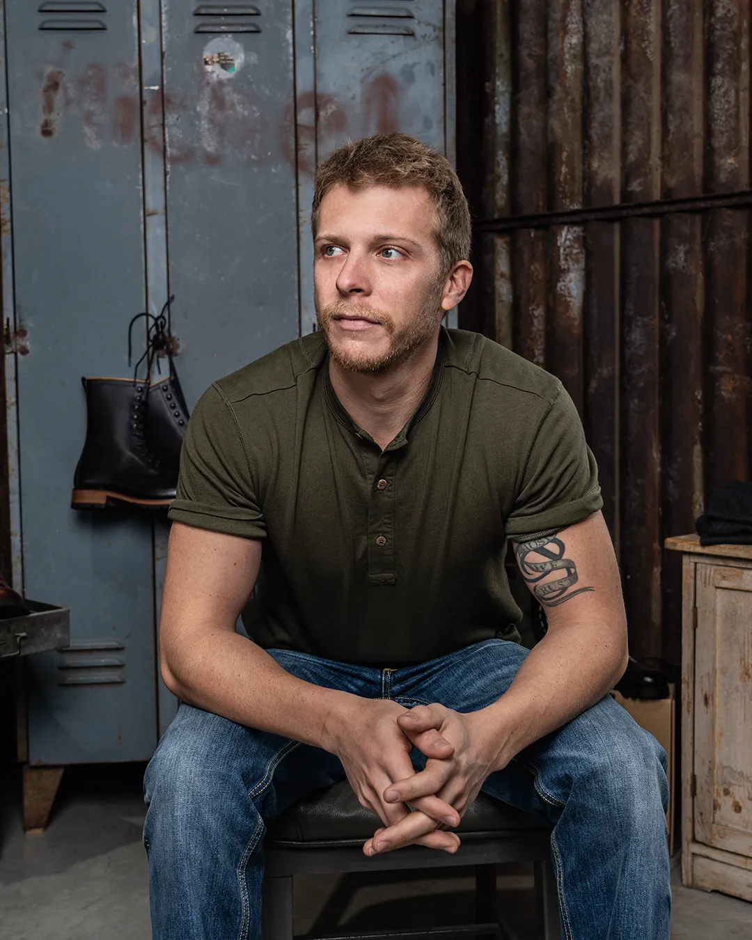 1927 Henley Shirt short sleeve Mojave green