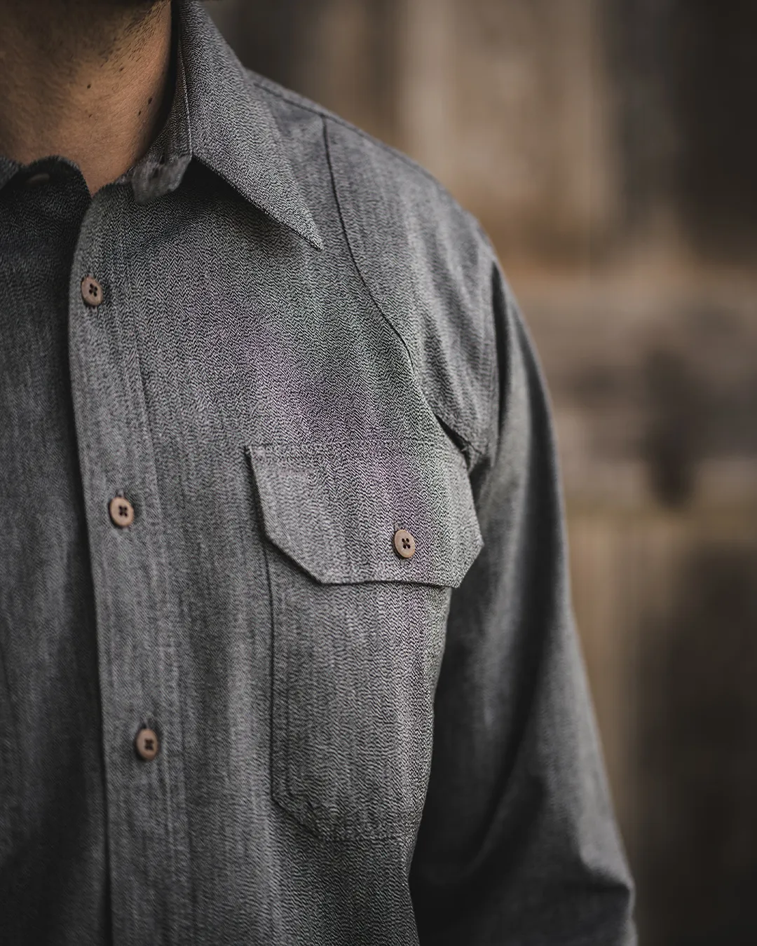 Nuestra camisa Engineer 1932 refleja una camisa de trabajo típica de la década de 1930 con hombros y codos reforzados. Esto se hizo para que los puntos de tensión típicos fueran más fuertes y duraderos.