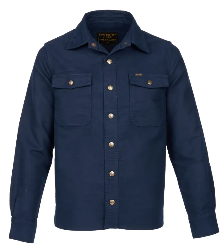 Históricamente, las camisas CPO se fabricaban con tejidos de lana o poliéster/lana. Para nuestra versión en negro azufre hemos utilizado un tejido pesado de piel de topo. El moleskin se fabrica en Alemania según especificaciones antiguas.