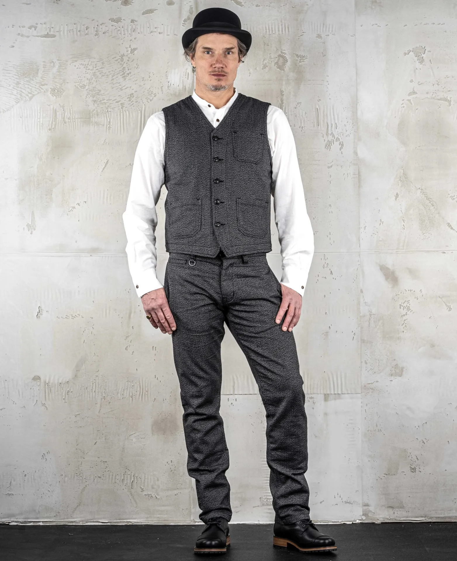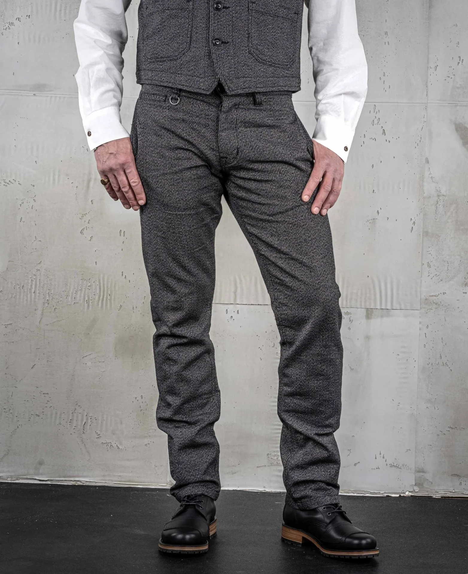 1947 Harvester Trousers French asphalt es un tejido 100% algodón y, como su nombre lo indica, se usó ampliamente para la ropa de trabajo francesa. El tejido suave y transpirable ofrece una gran comodidad, especialmente en temperaturas más cálidas.
