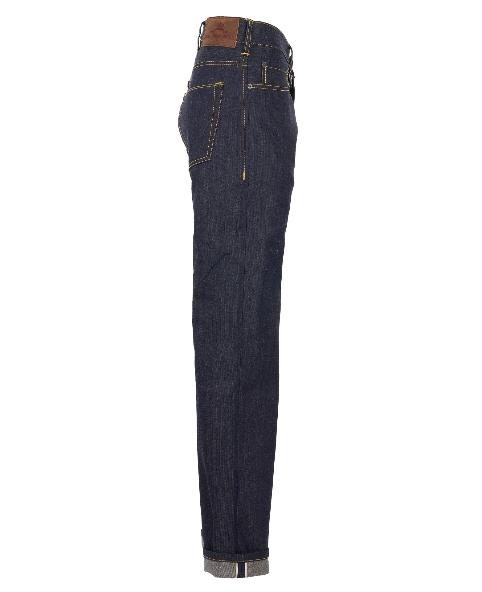 Nuestro pantalón Roamer 1947 encarna el estilo vaquero atemporal de la década de 1940 con comodidad moderna. El talle alto y el muslo de corte ancho ofrecen versatilidad y comodidad. El denim con orillo azul oscuro elaborado con algodón y cáñamo promete durabilidad y textura. El carácter crudo y sucio desarrolla con el tiempo un color muy personal.