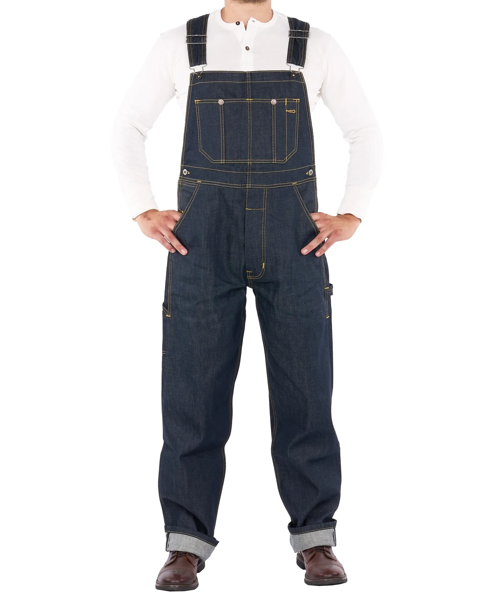 Verdaderos baberos de ropa de trabajo como los que se usaban a mediados de la década de 1950. Nuestro babero Mechanic está confeccionado con denim de orillo. Independientemente de los costos y la mano de obra, fabricamos una tela de mezclilla que es verdaderamente única. El ajuste es tan elegante como cómodo, para su trabajo y tareas diarias.