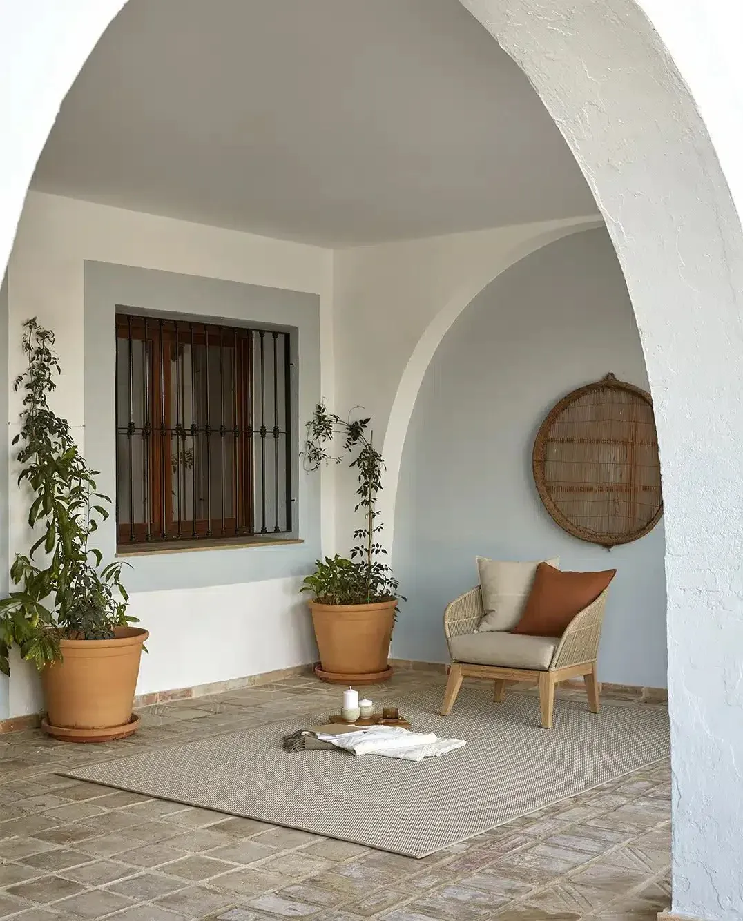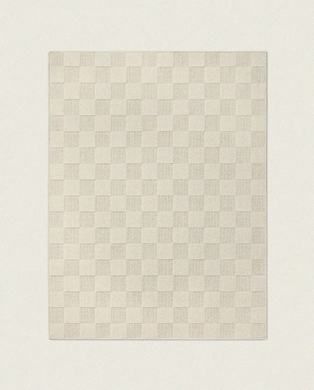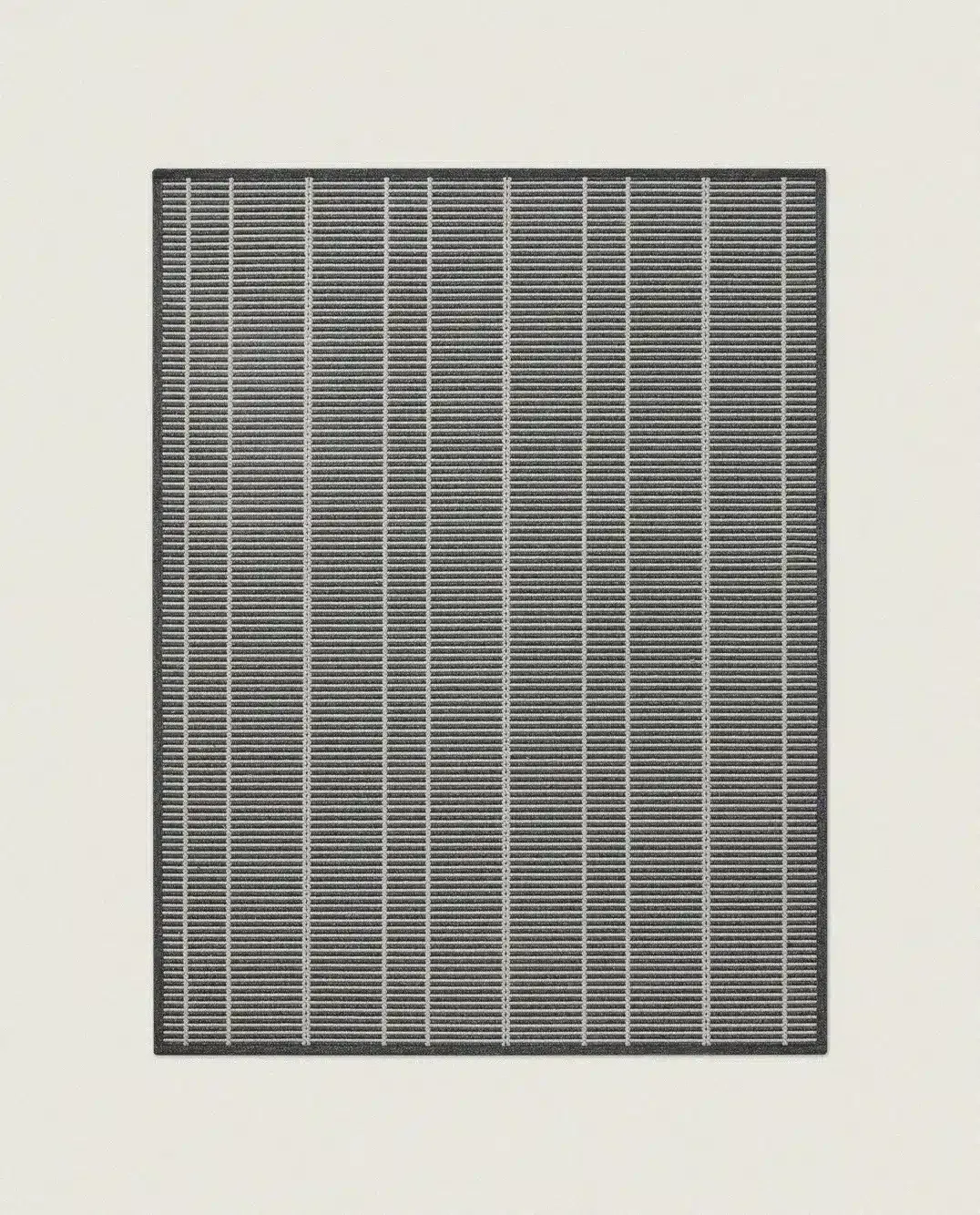 Maravillosa alfombra rectangular apta para interior y exterior, fabricada en telar de tejido plano y con un tratamiento UV incorporado en las fibras que permite su uso interior y exterior con solidez del color a la luz. Apta para uso con suelo radiante.