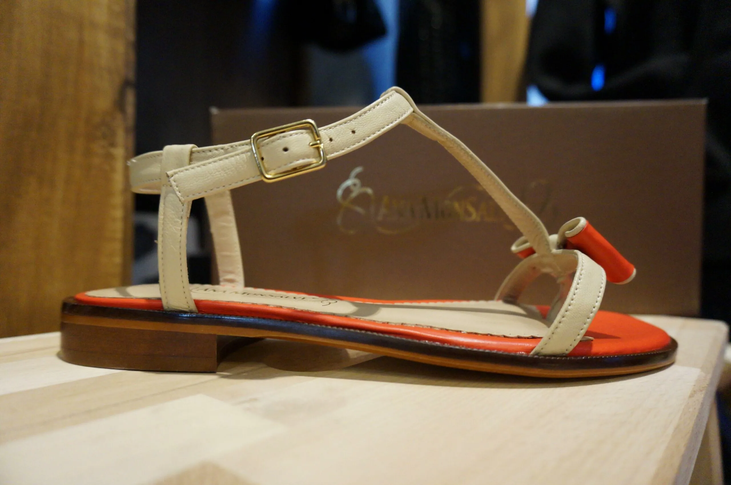 Sandalia de piel en color rojo y beige. Muy comoda.