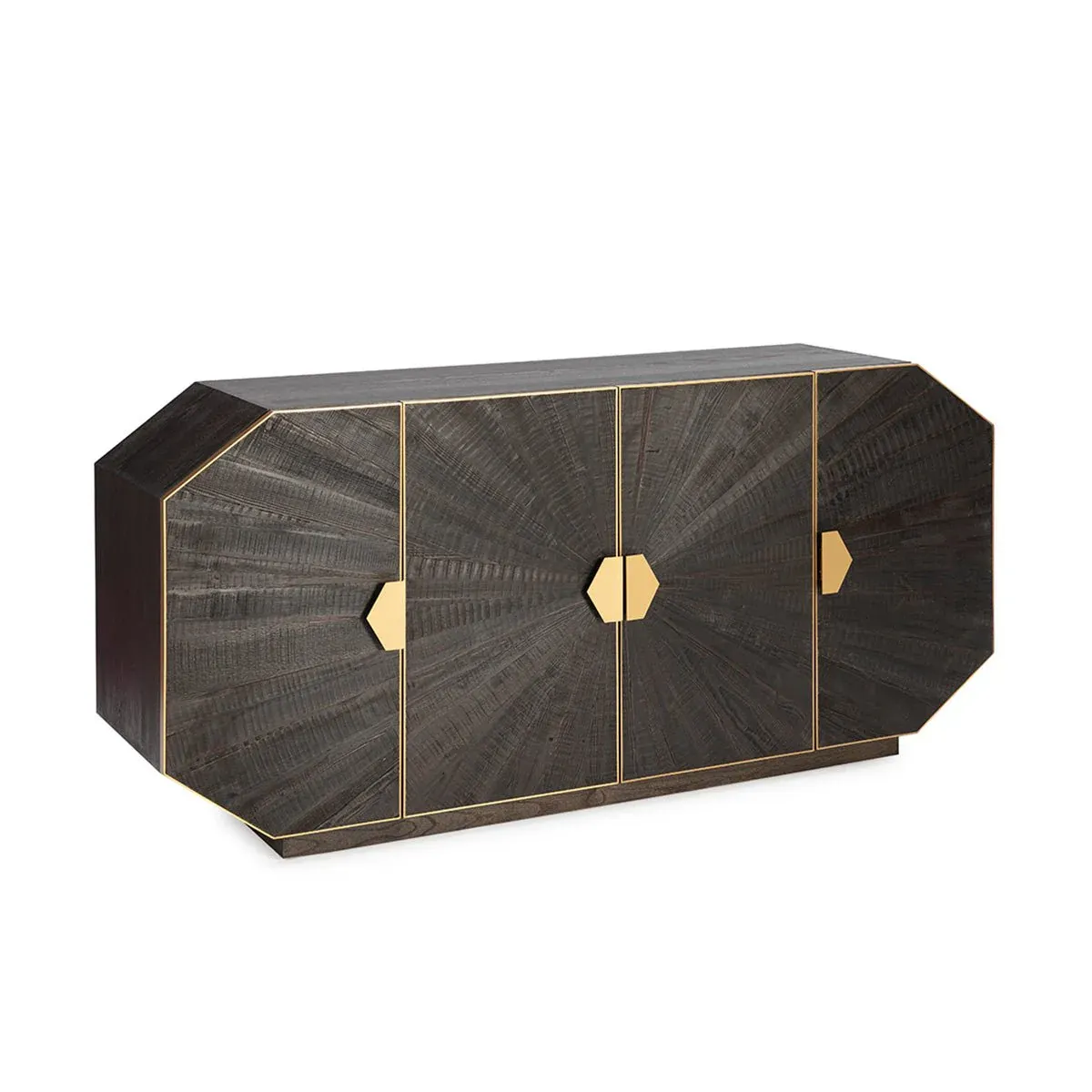 Aparador de madera marrón oscuro y metal de color dorado. Madera de alta calidad procedente de bosques sostenibles.