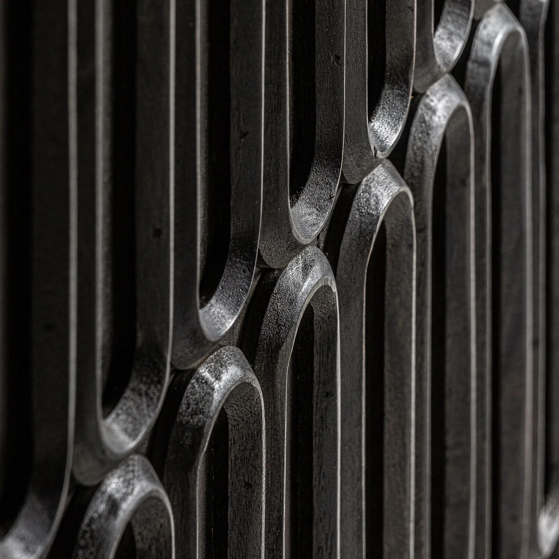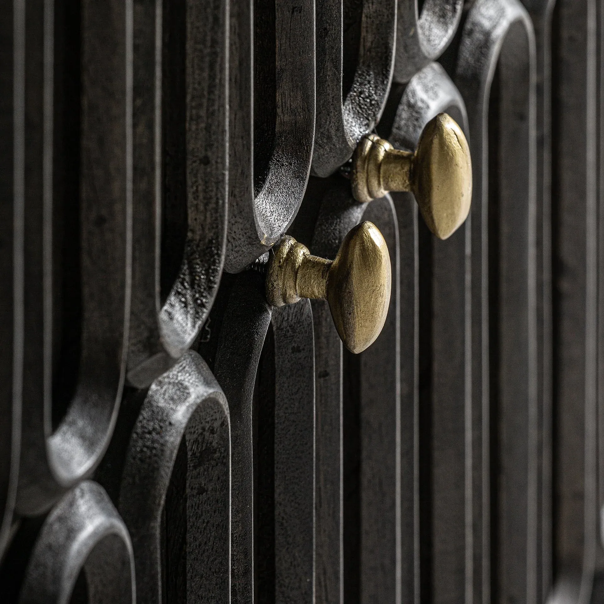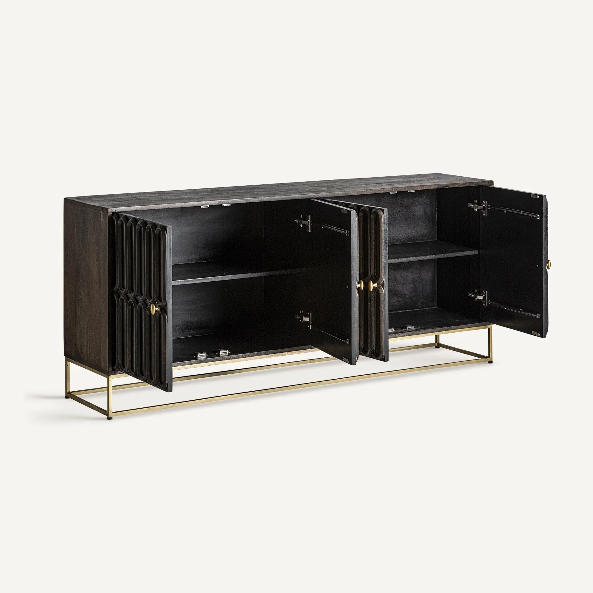 Aparador fabricado con madera de mango y detalles de latón en tonos marrón y oro, este armario comedor se puede colocar en el salón, la habitación o el comedor siendo así la solución perfecta para almacenar y mostrar tus piezas más preciadas. No desmontable y originario de la India, este mueble es una inversión segura en estilo y calidad para tu hogar.