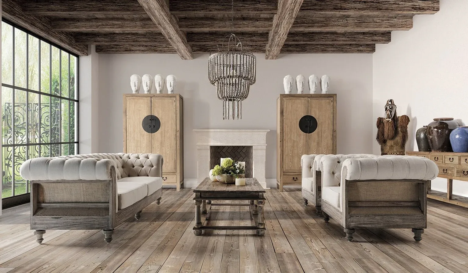 Aparador de madera de pino reciclado en color natural envejecido de estilo colonial.