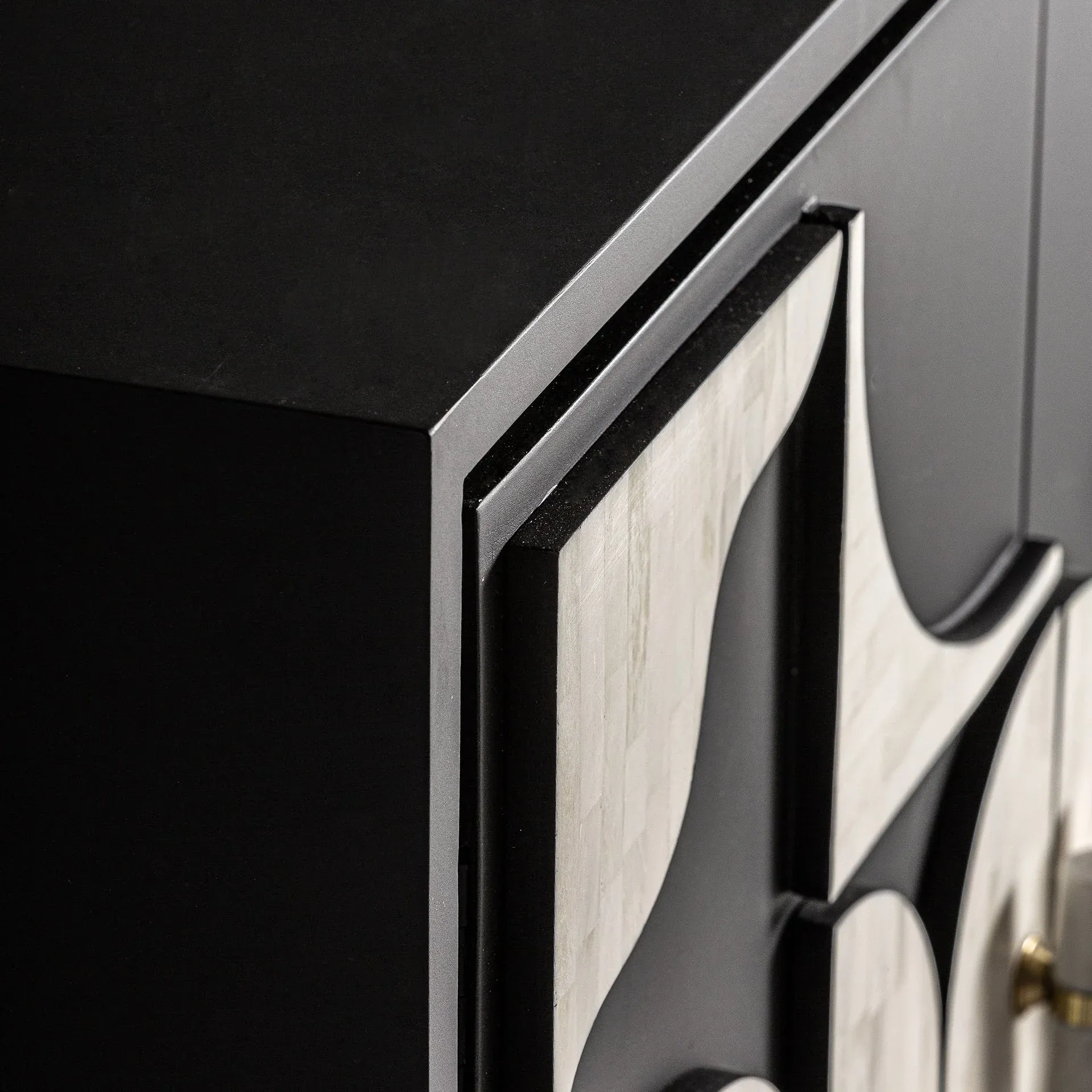 Aparador imprescindible para los amantes del diseño, realizado en hierro y detallado en negro y hueso blanco, ofrece un diseño atemporal con la robustez del hierro perfecto para espacios con carácter.