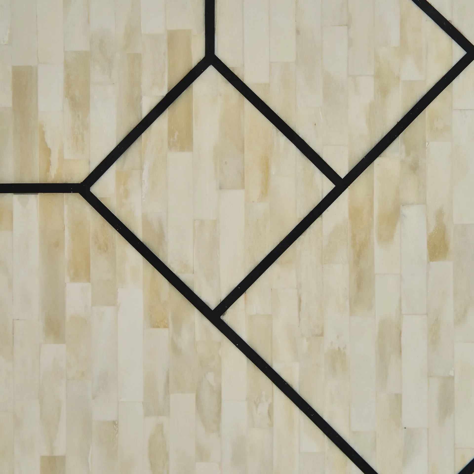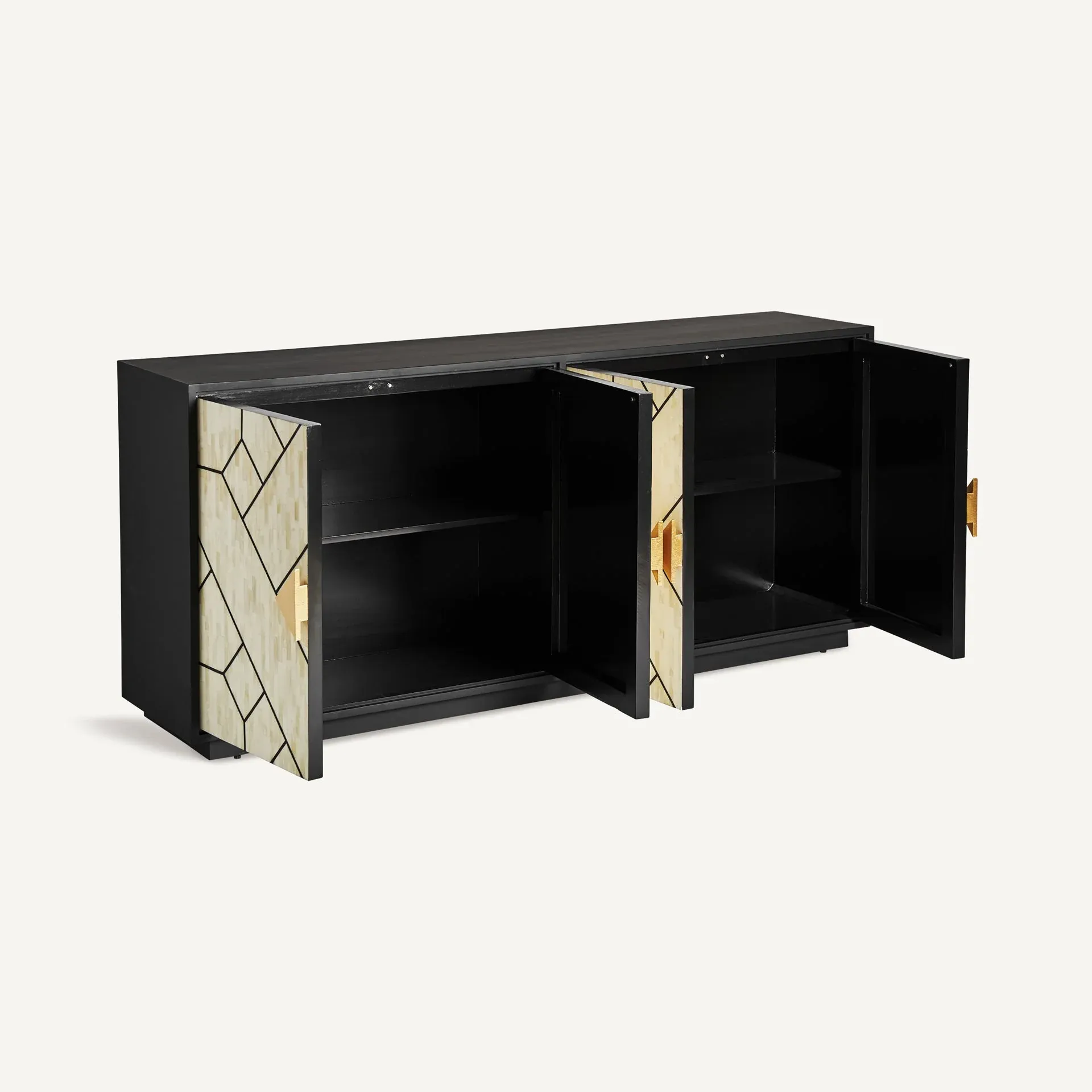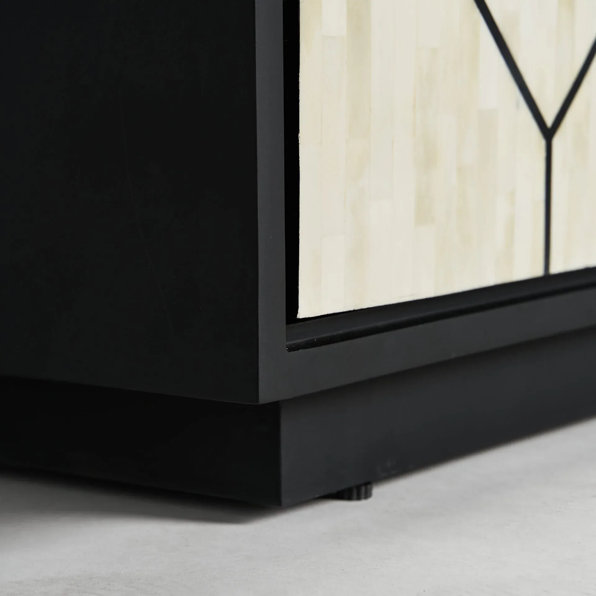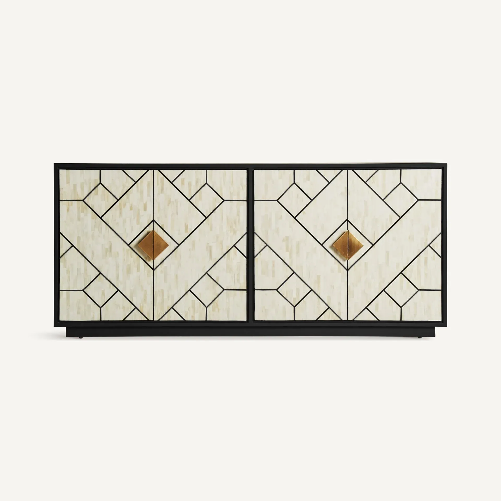 Precioso aparador en color negro, blanco y oro, fabricado en hierro y hueso.