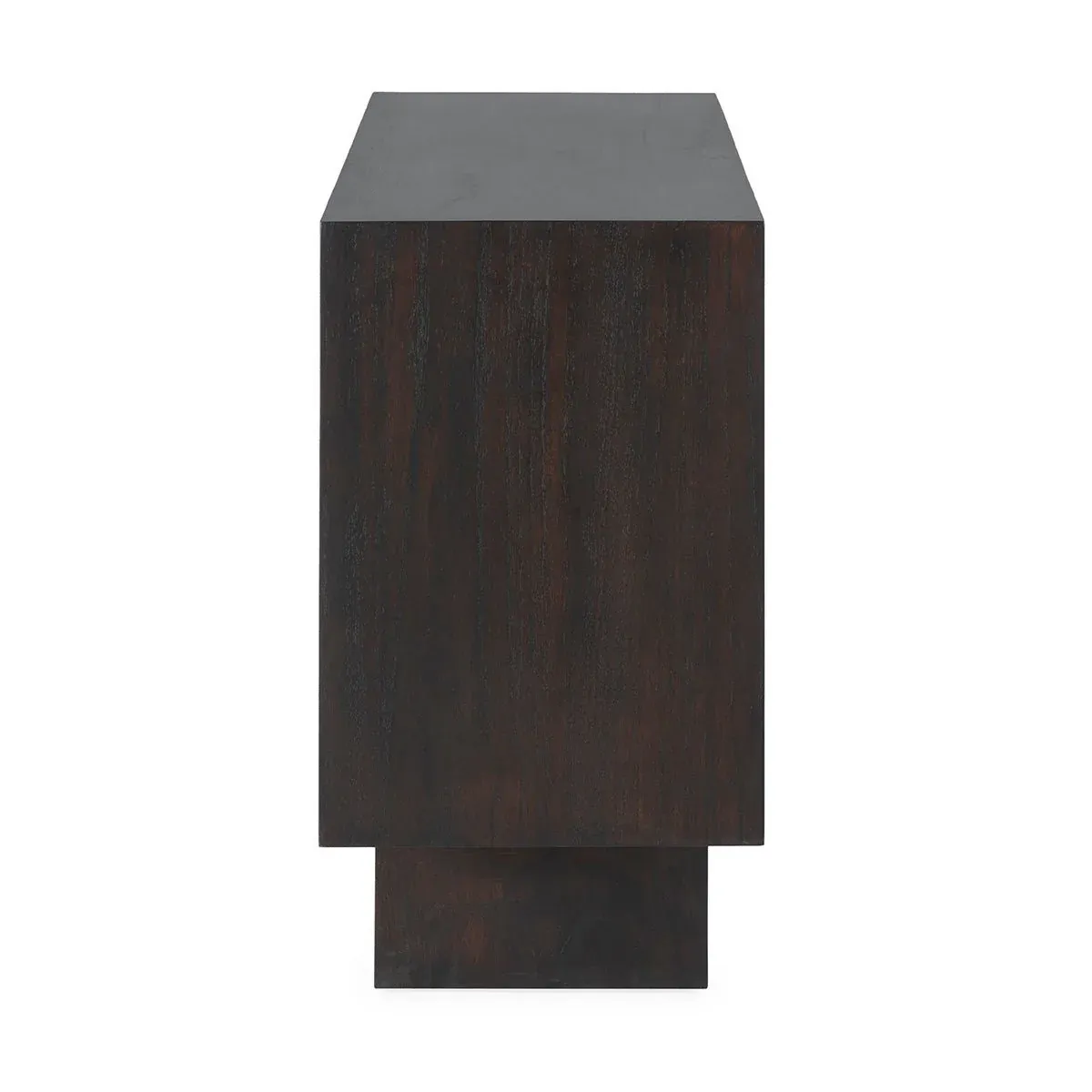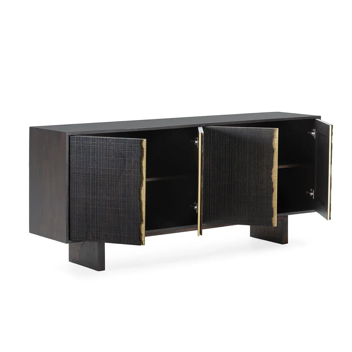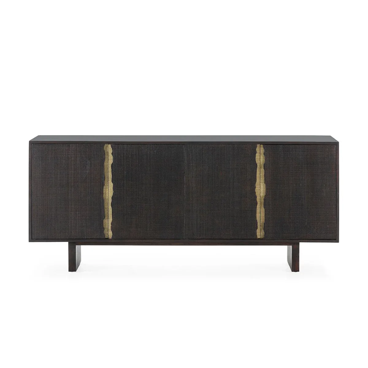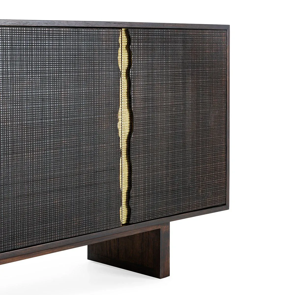 Aparador de madera de cedro blanco y marrón oscuro con detalles en dorado .