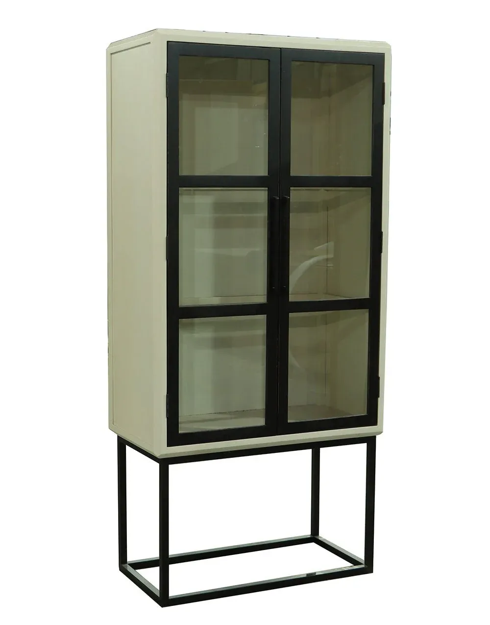 Precioso armario en color gris y oro fabricado en madera de mango cuenta con dos puertas y tres cajones.