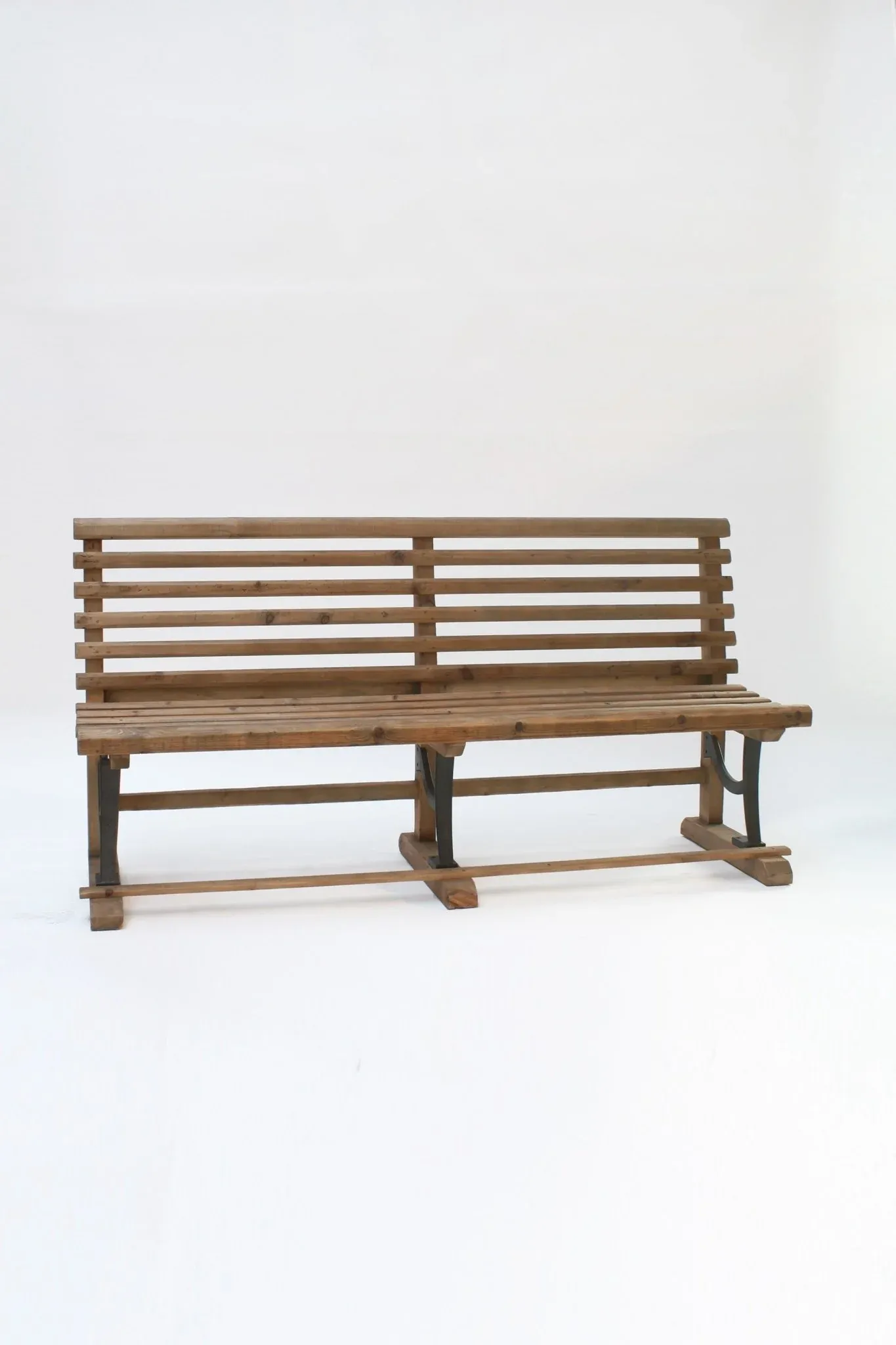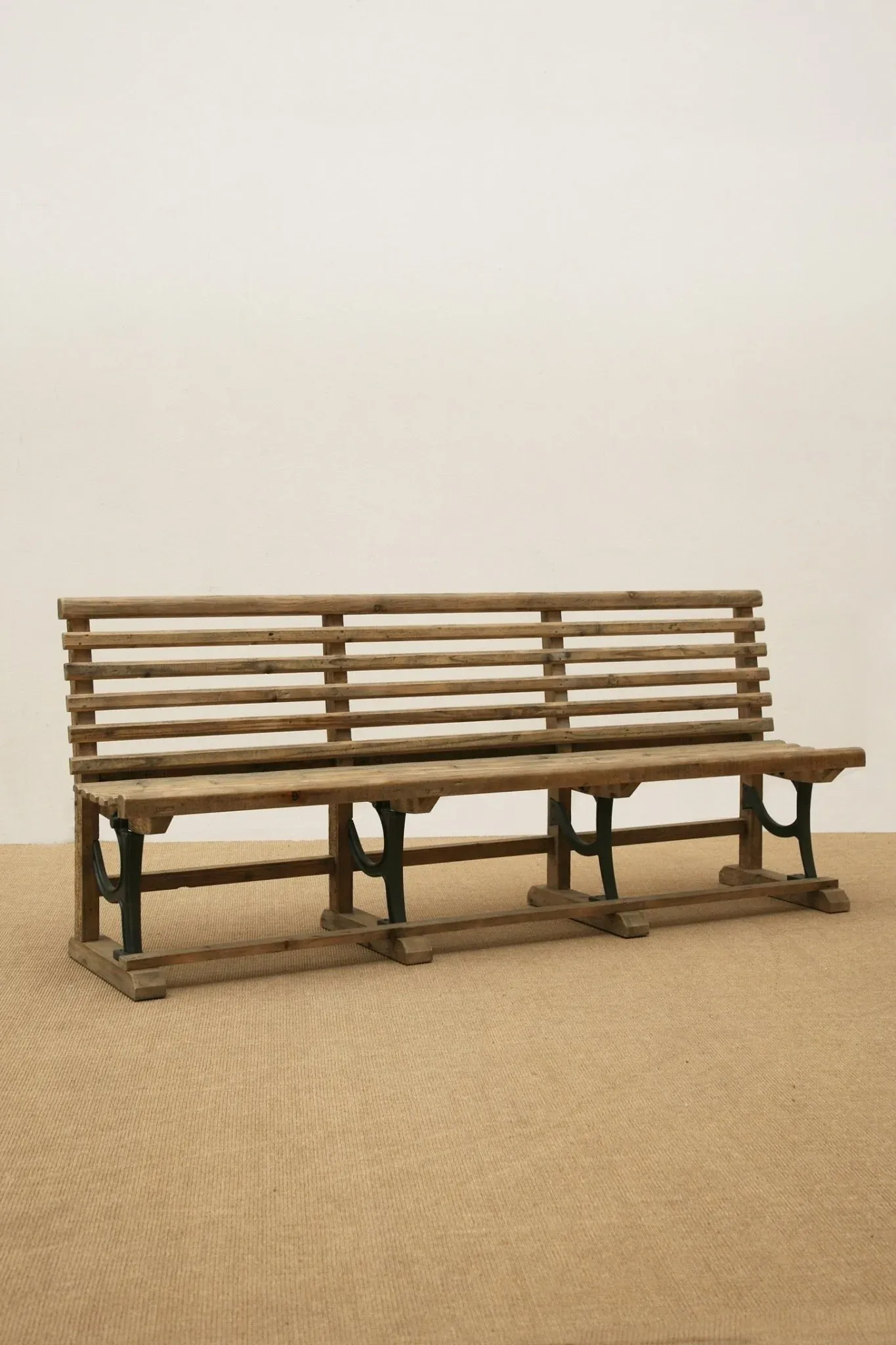 Precioso banco fabricado en madera de pino natural con detalles en hierro color negro. Disponible en diferentes tamaños.