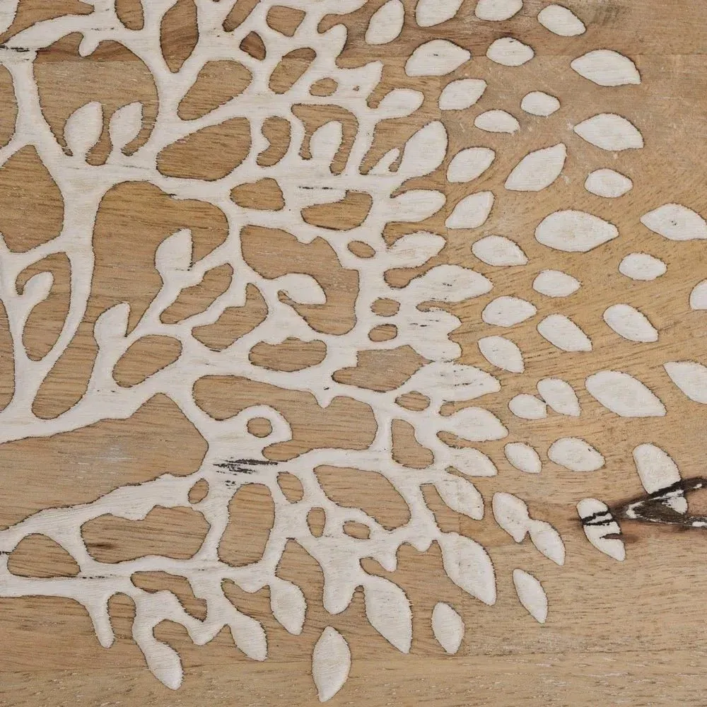 Preciosa bandeja fabricada en madera color natural con dibujo del árbol de la vida. Disponible en dos tamaños diferentes.
