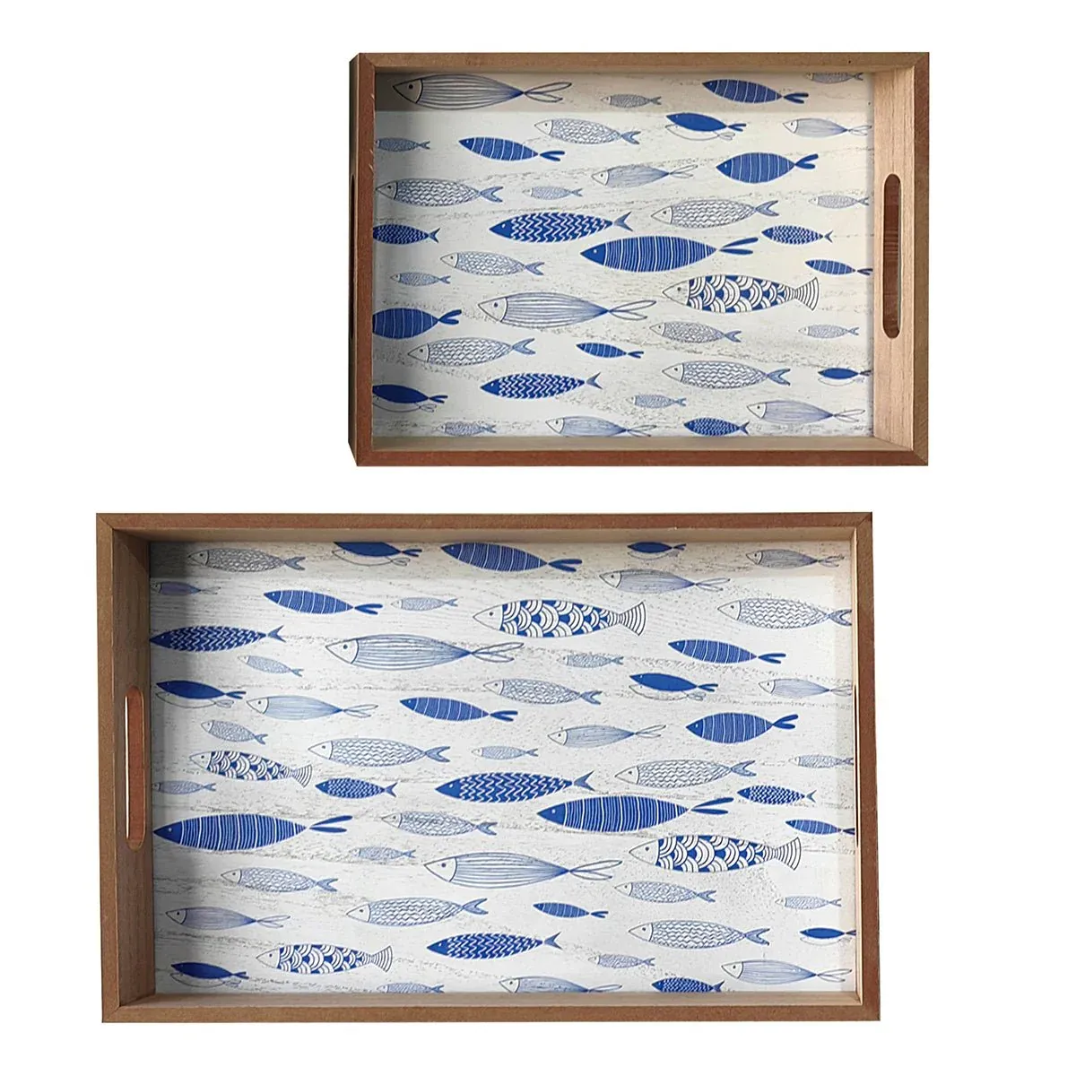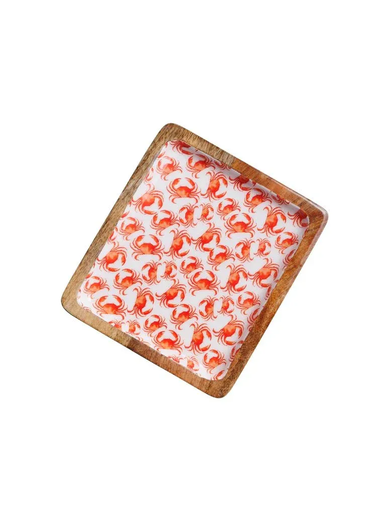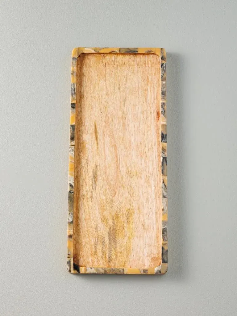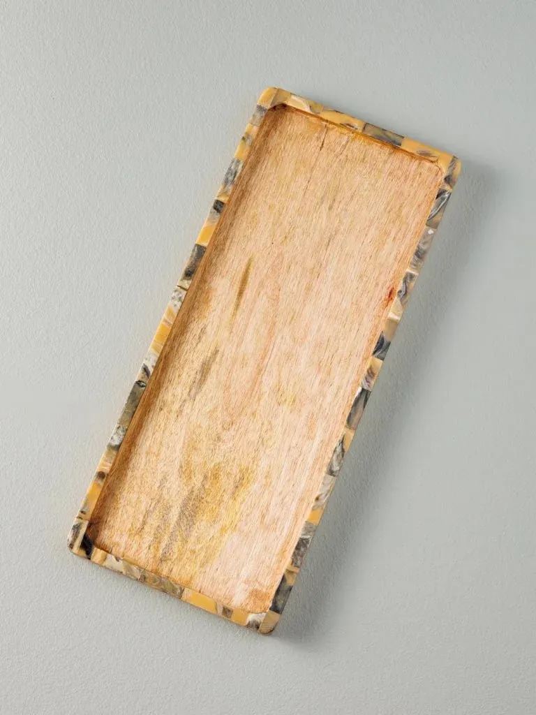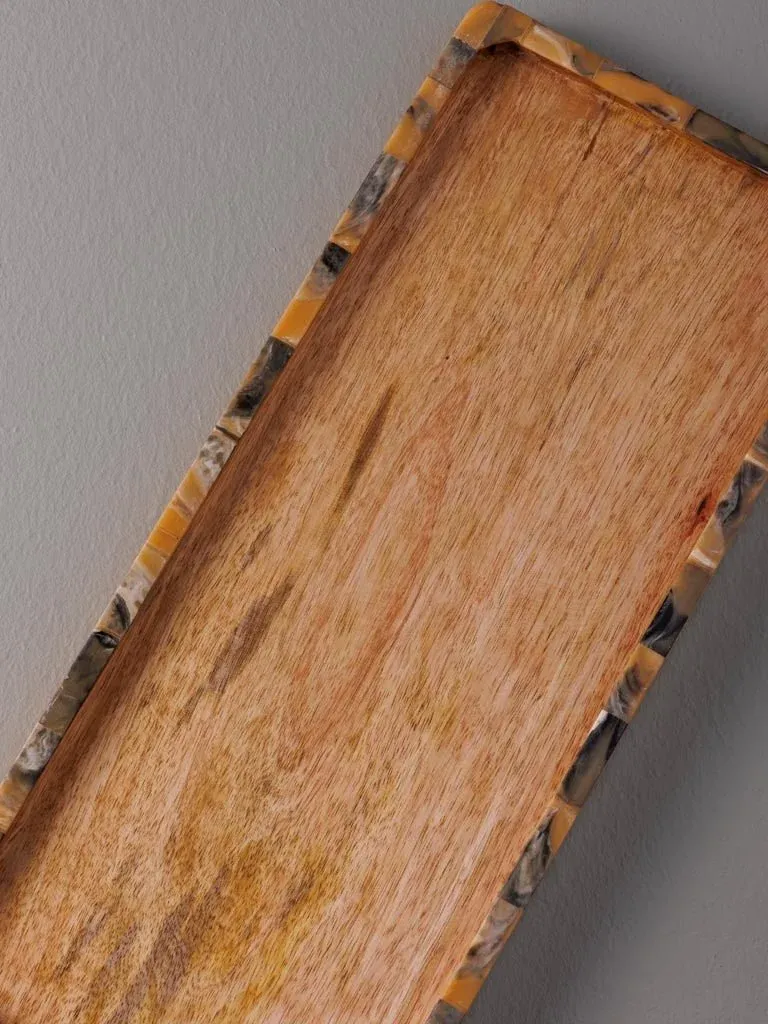 Preciosa bandeja rectangular fabricada en madera color marrón.