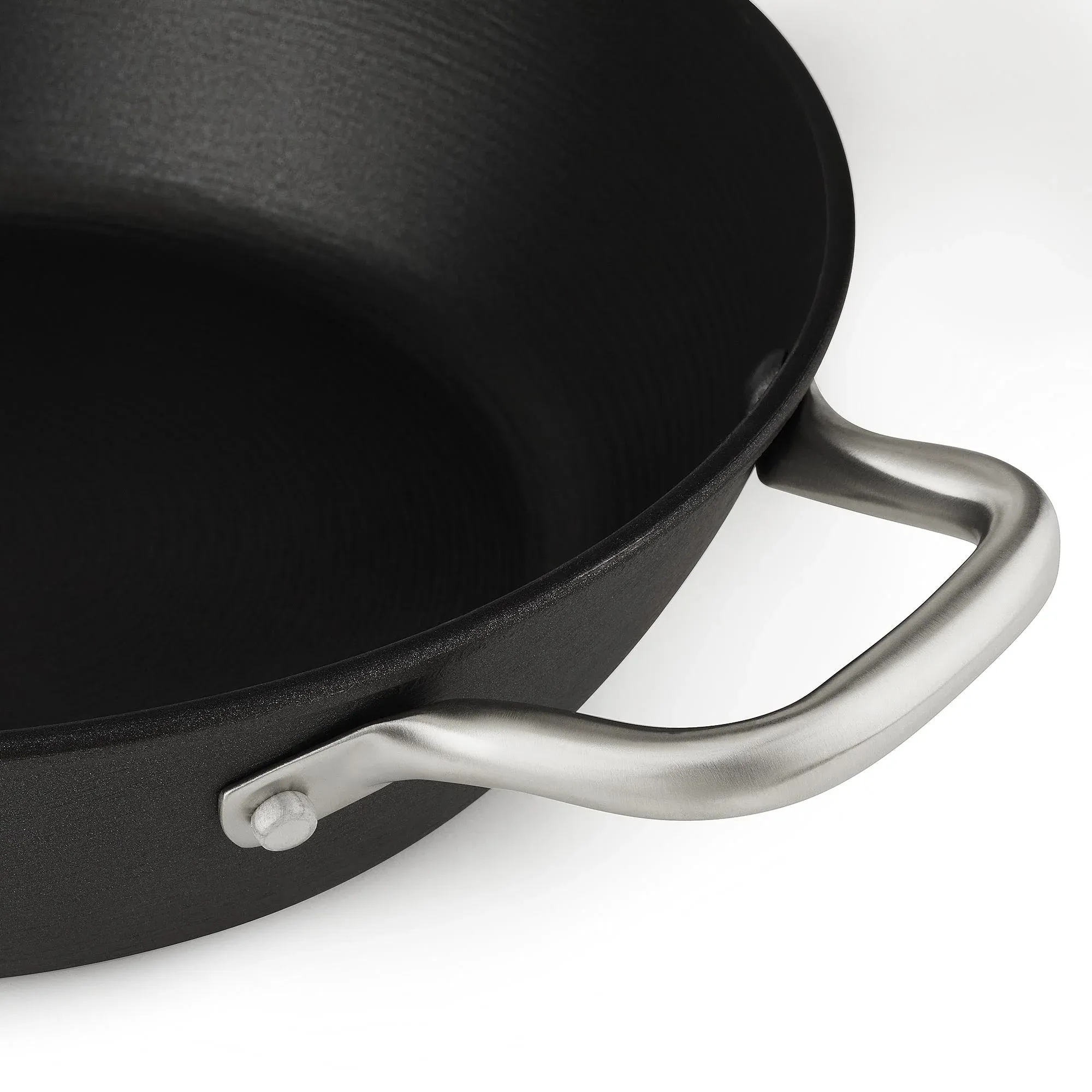 Su cuerpo en hierro fundido y sus asas semi-profesionales en acero inoxidable la convierten en una pieza ideal para su uso diario. El hierro fundido es el material perfecto para cocinados a fuego lento, ya que distribuye el calor de manera uniforme.