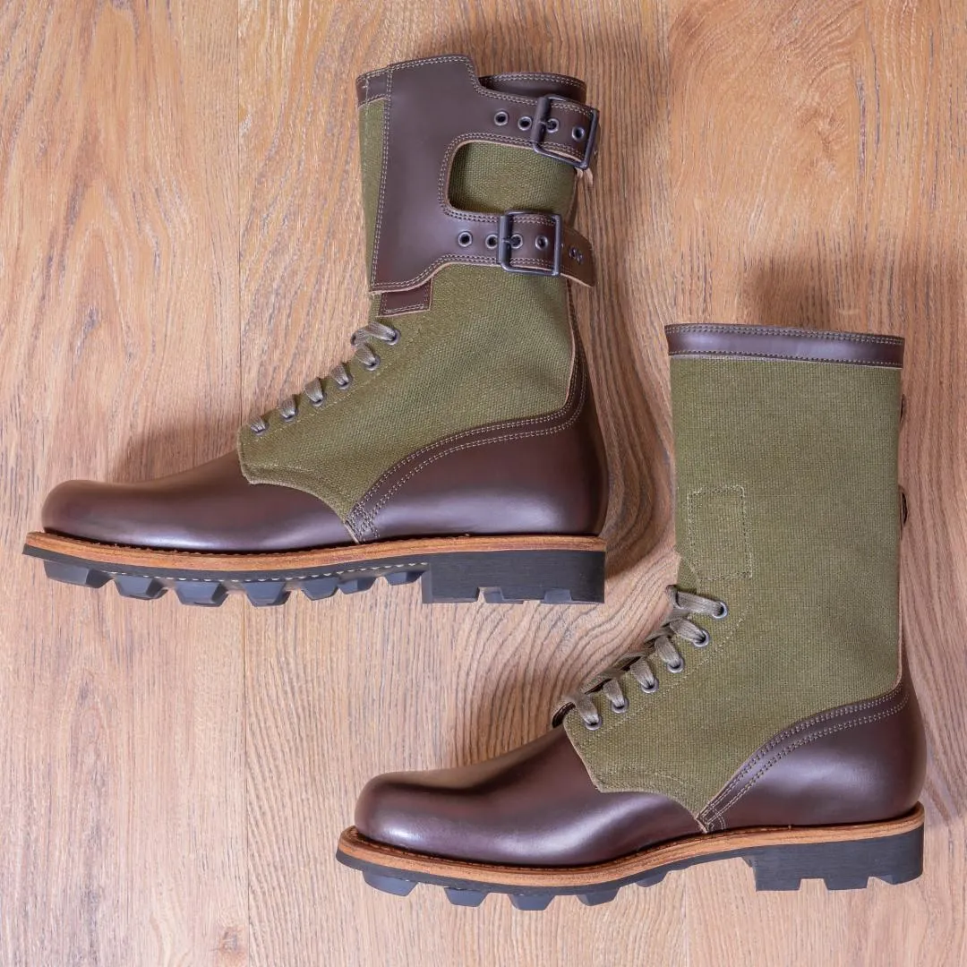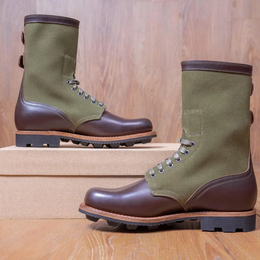 Las botas de Okinawa de 1952 tienen su origen en las selvas del sudeste asiático. Los Estados Unidos. Army desarrolló zapatos para climas cálidos y húmedos en la década de 1950. Estos fueron probados en Okinawa, Japón. Es por eso que los coleccionistas llaman a los zapatos originales «Okinawa Boots». Las botas se basan en los EE. UU. Botas con hebilla del ejército de los años 40. Pero en lugar de fabricarlos completamente en cuero, se han reemplazado partes hechas de lona para lograr una mejor transpirabilidad. Como el modelo histórico, nuestros zapatos tienen ribete Goodyear. Para mantenernos lo más cerca posible del original histórico, incluso producimos el original Jungle Sole de grano grueso. Los siguientes detalles caracterizan nuestras botas Okinawa de 1952: – Parte inferior: piel de vacuno, superior: lona de 100% algodón / piel de vacuno – Goodyear ribeteado – auténtico «lenguado de la jungla» de grano grueso – Fabricado en Portugal Los tamaños son los siguientes: Estados Unidos 8 = 42 Estados Unidos 9 = 43 Estados Unidos 10 = 44 Estados Unidos 11 = 45 Estados Unidos 12 = 46
