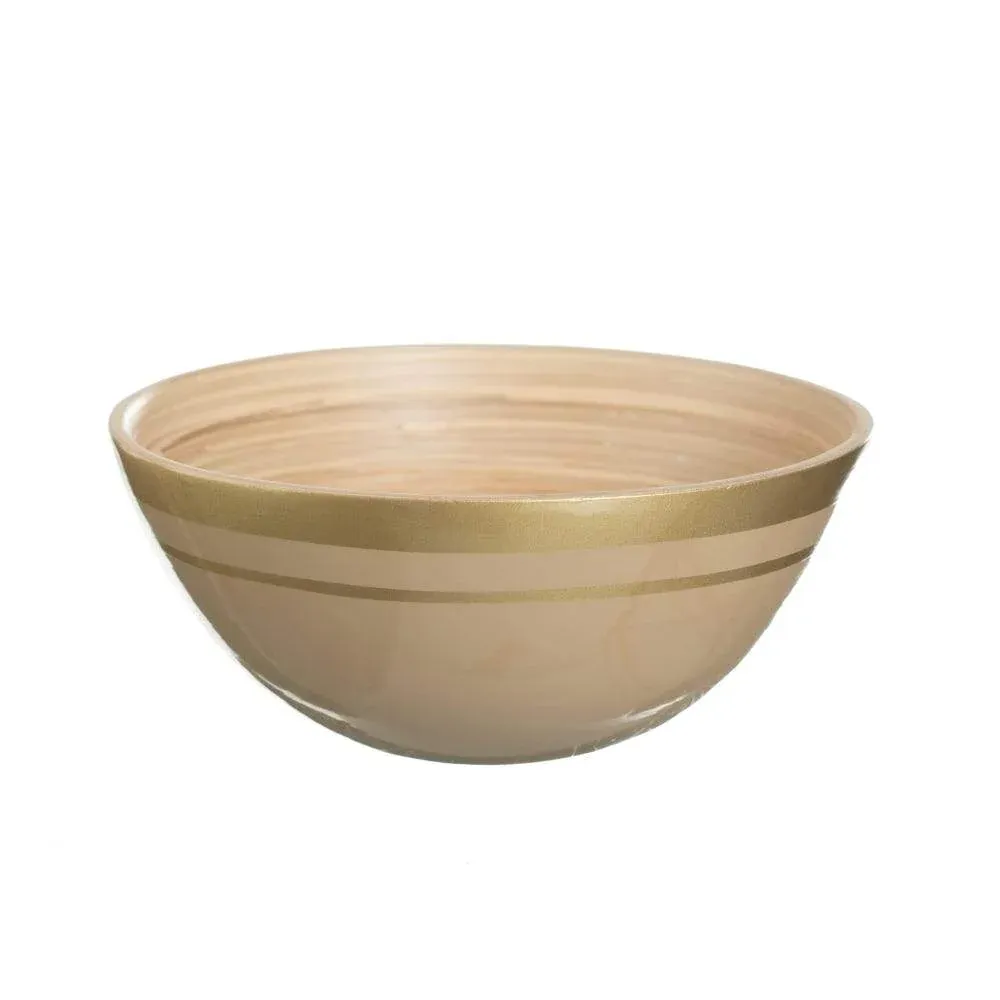 Precioso bowl de bambú color champán ideal para decorar como centro de mesa o cualquier parte de tu cocina.