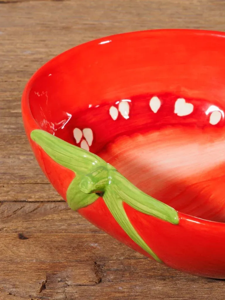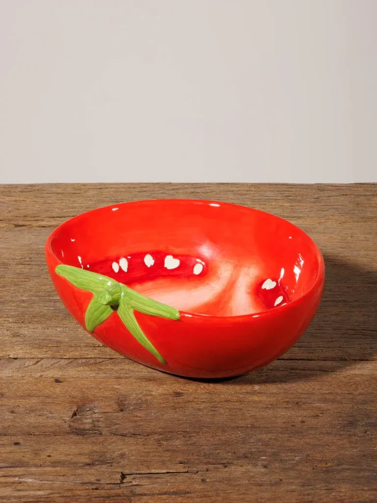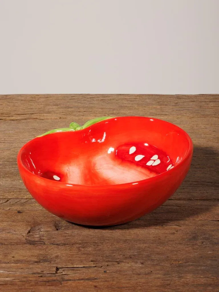 Original bowl en forma de tomate fabricado en cerámica en color rojo.
