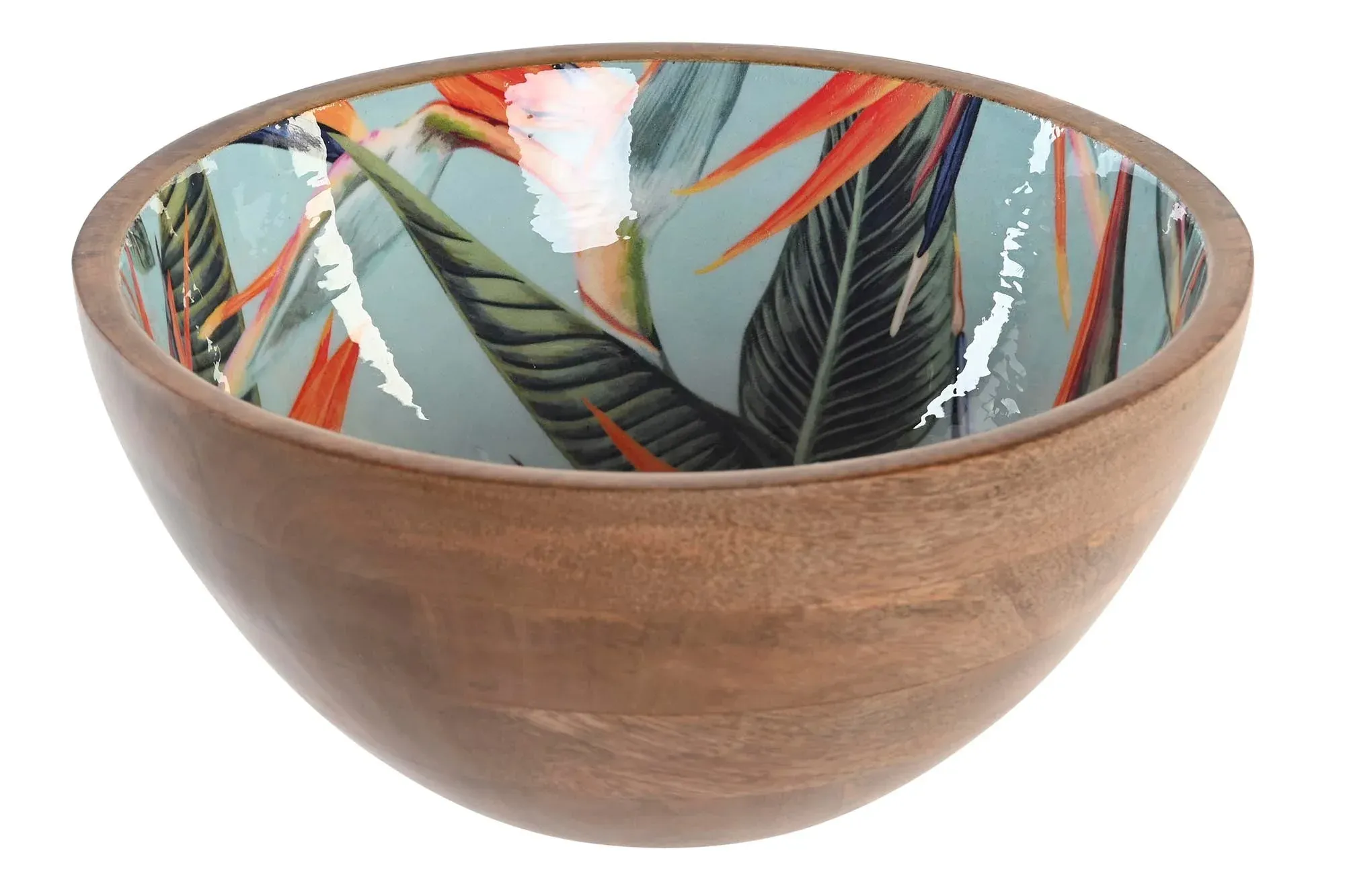 Precioso bowl de madera de mango y esmaltado ideal para decorar como centro de mesa o cualquier parte de tu cocina.