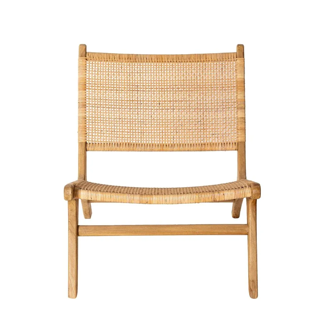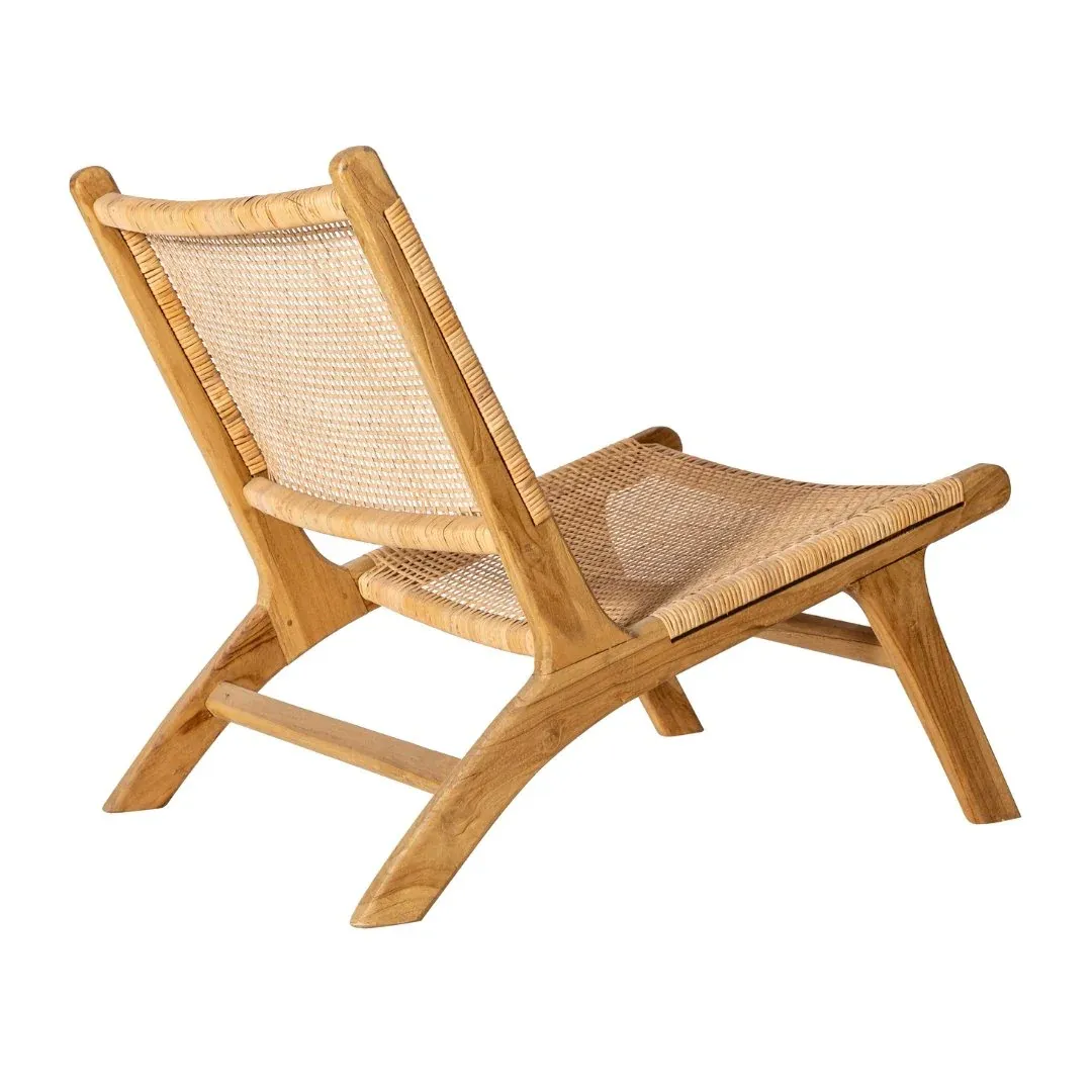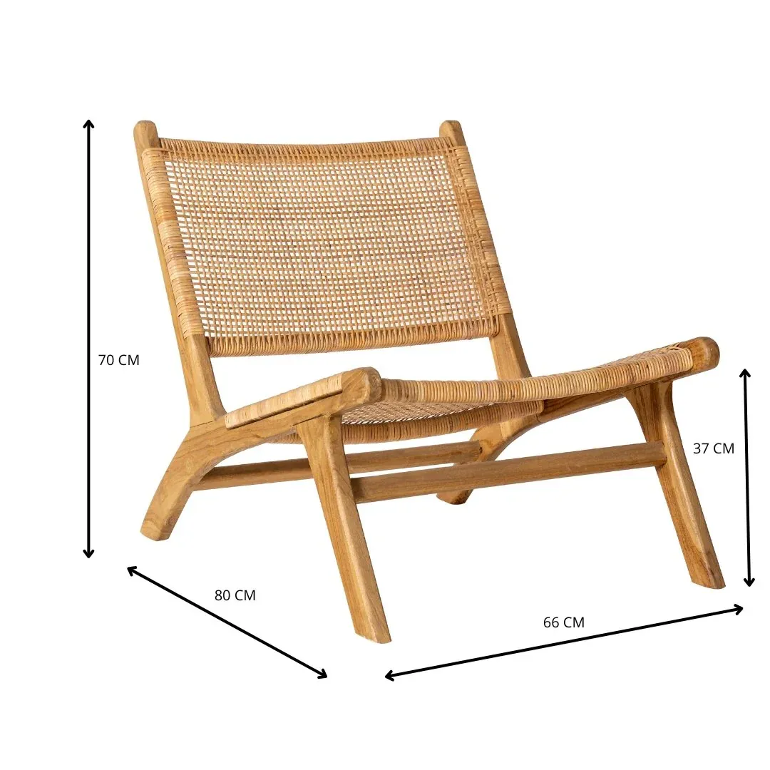 Preciosa butaca sin brazos fabricada en madera de teca y ratán natural.