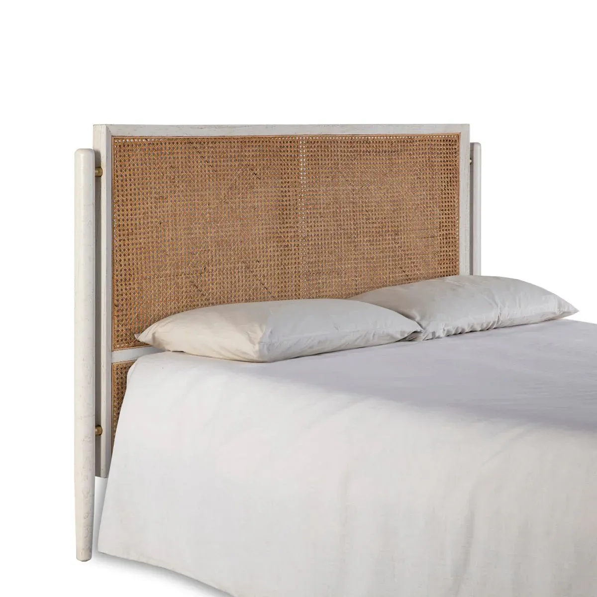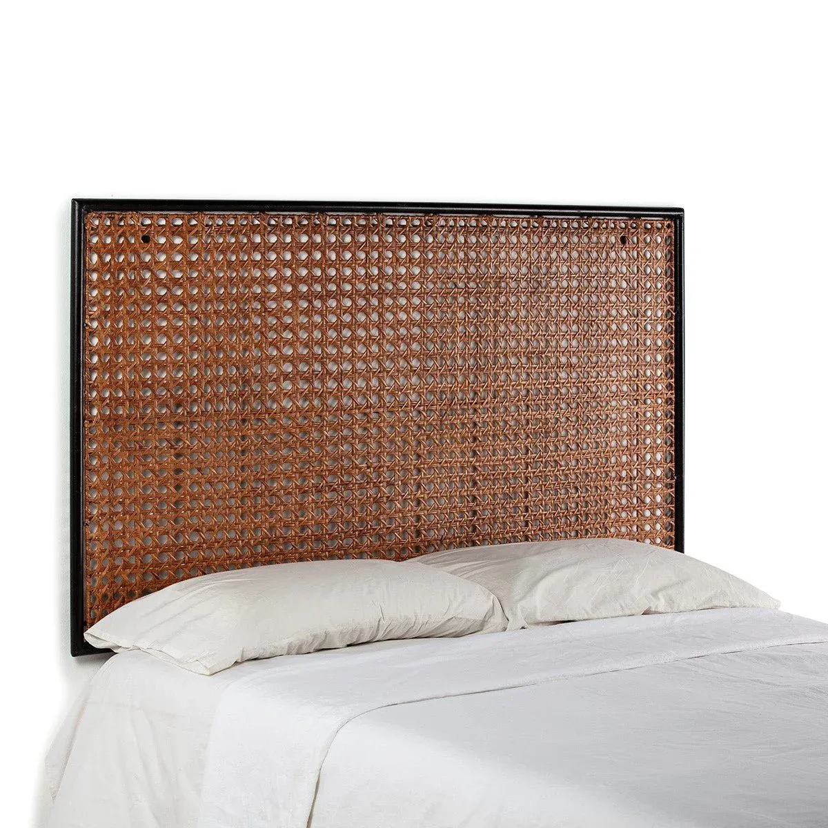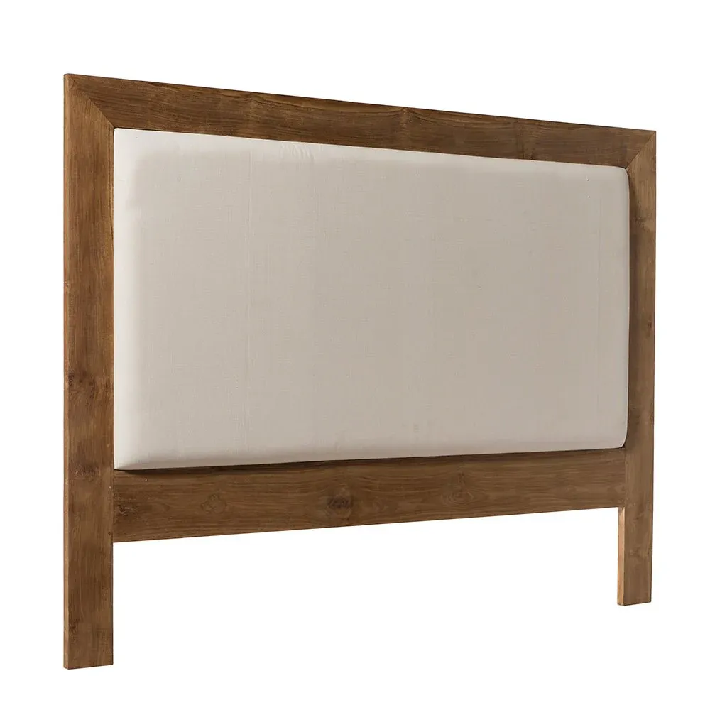 Cabecero de líneas rectas de madera color natural. Disponible en dos tamaños diferentes.