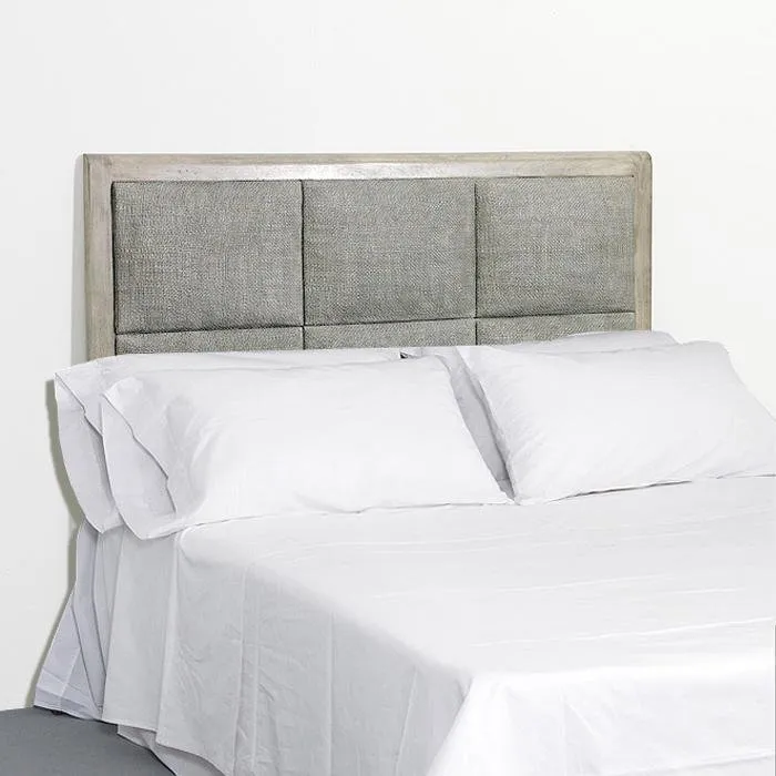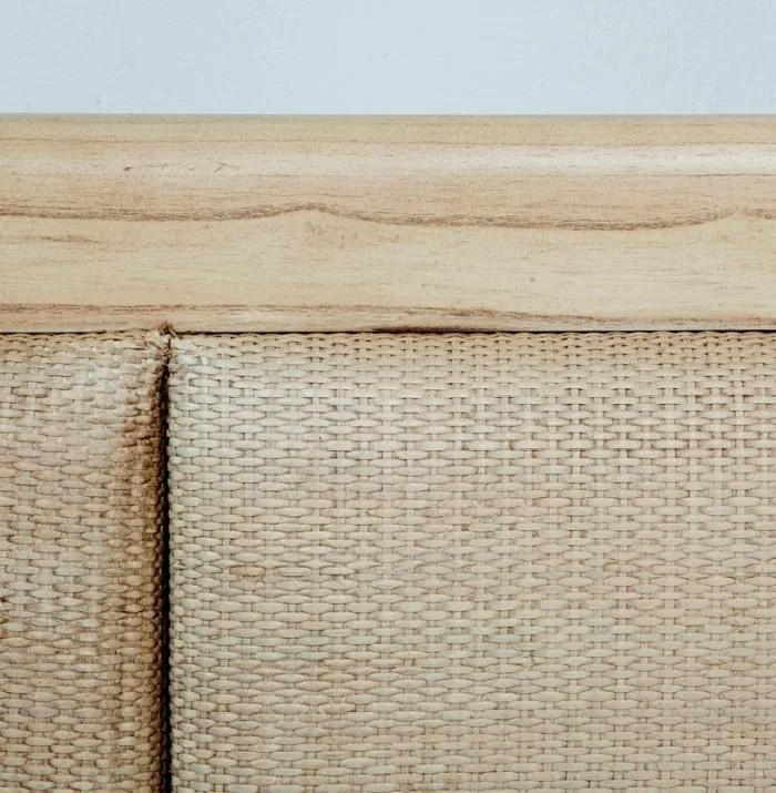 Cabecero de ratán y madera procedente de bosques sostenibles en color natural y gris.