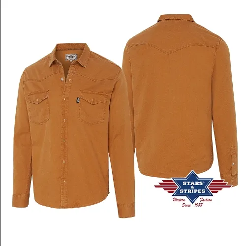 Camisa occidental excepcionalmente tejida en color marrón con lavado claro. El discreto canesú Western, los botones a presión y los bolsillos aplicados en el pecho hacen de esta camisa Western un imprescindible.