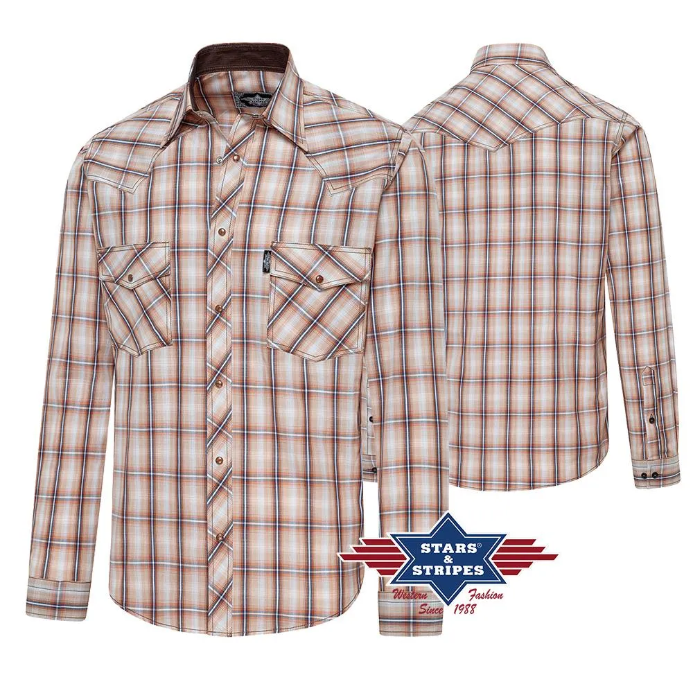Camisa vaquera a cuadros con canesú vaquero y bolsillos de parche en el pecho. Un ribete de tela en el cuello del mismo color que la camisa completa el diseño. Una doble fila de botones permite ajustar individualmente el ancho de los puños. Los botones de presión a juego en la tapeta de botones hacen que la camisa sea un verdadero punto culminante.