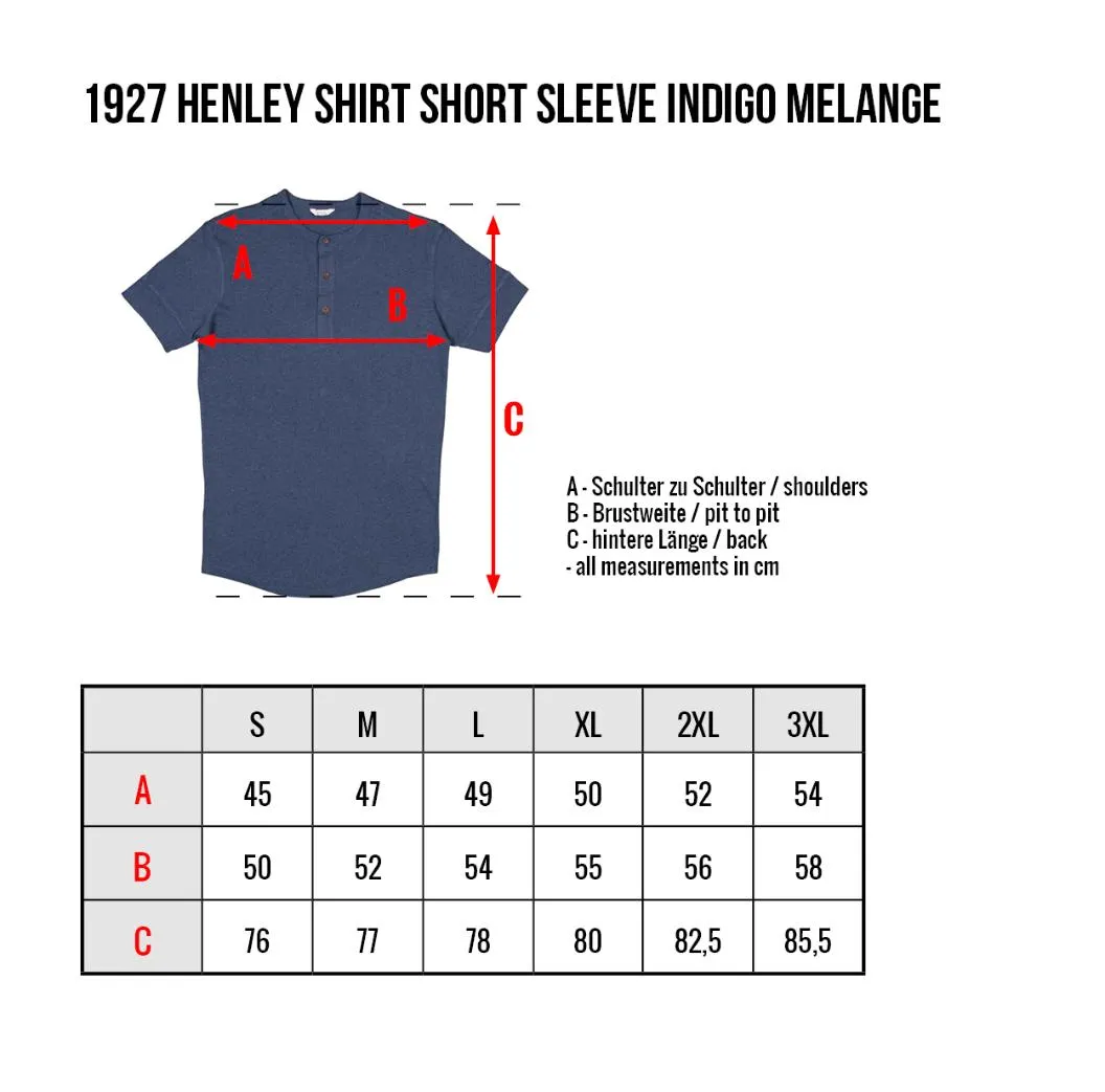 Camiseta de manga corta azul 1927 Henley Shirt short sleeve indigo melange