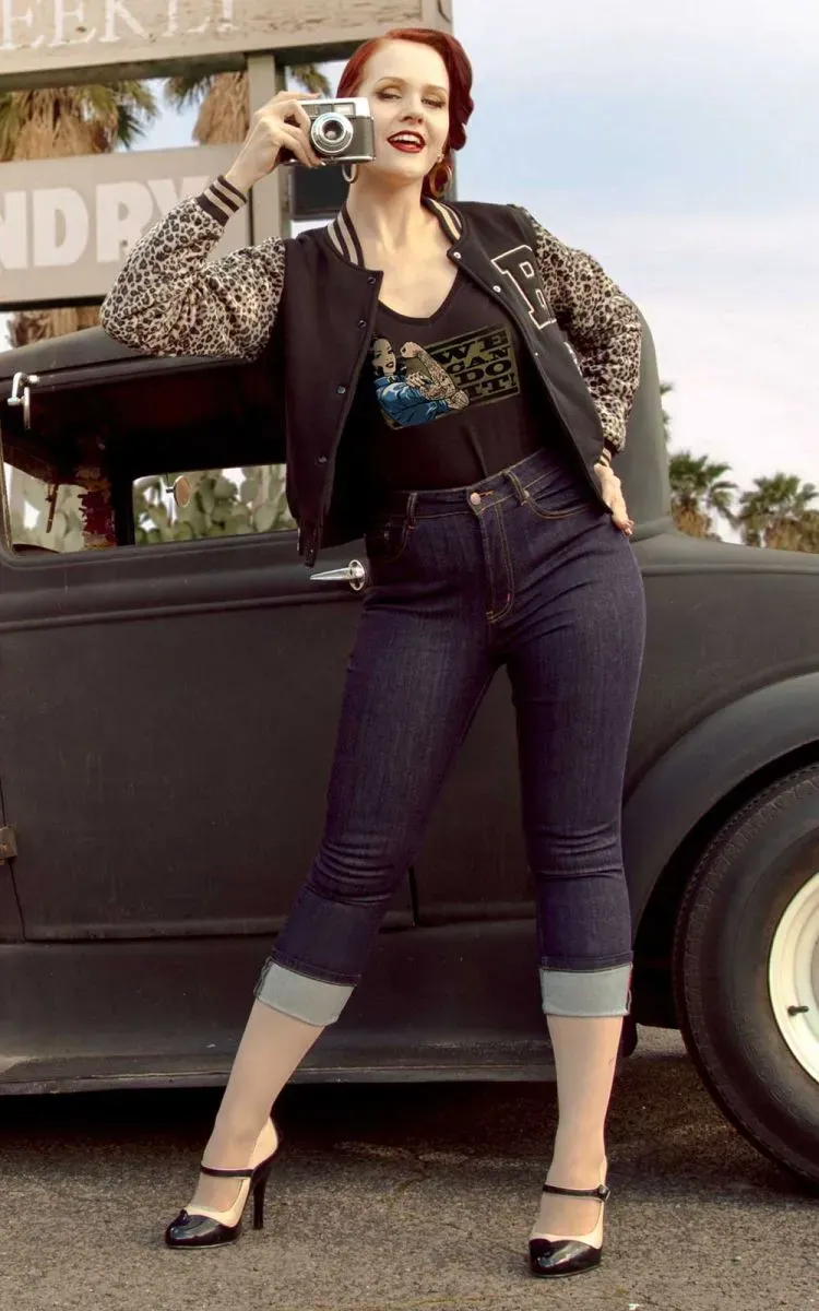Pantalones capri de los años 50 fabricados en denim elástico con una gran comodidad.