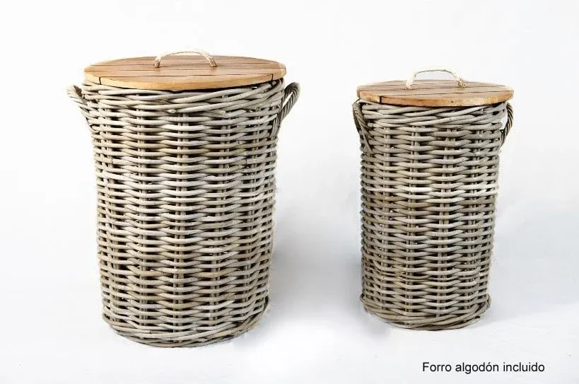 Cesta con tapa fabricado en kubu ( material parecido al mimbre pero más duro) en color gris con forro de algodón incluido.