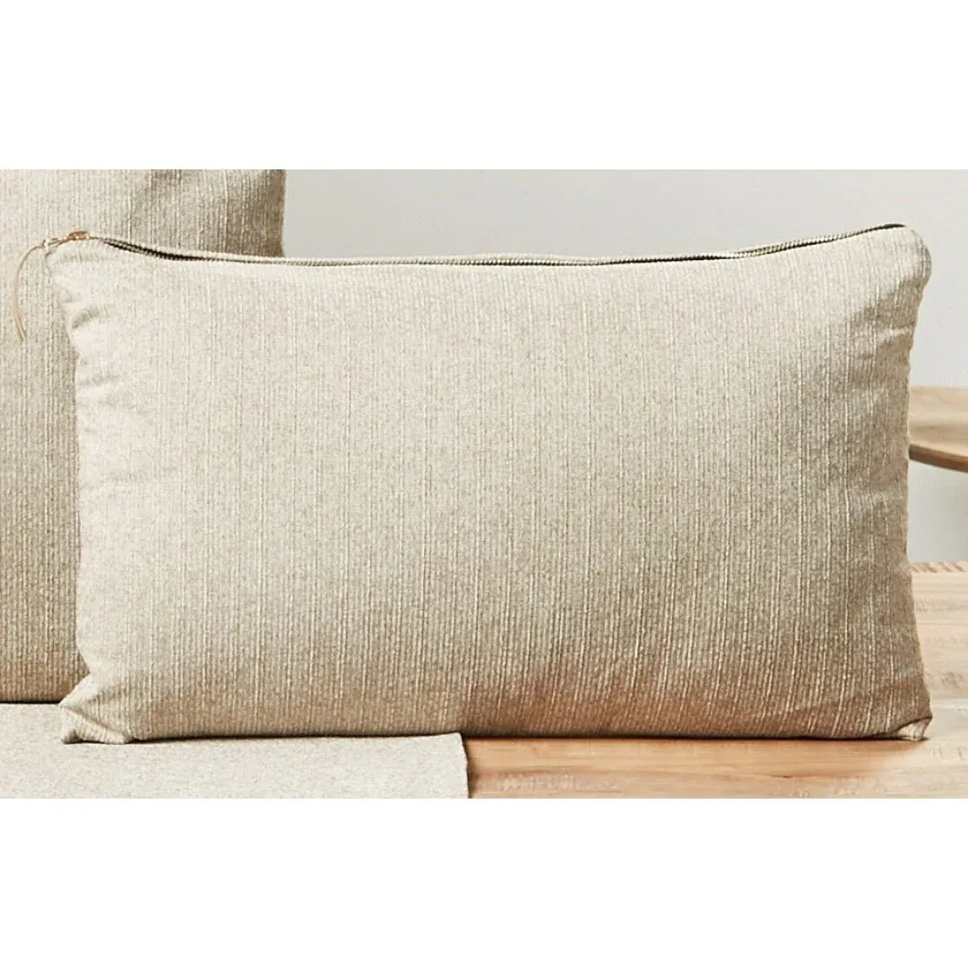 Cojín liso fabricado en tela color beige. Disponible en dos medidas.