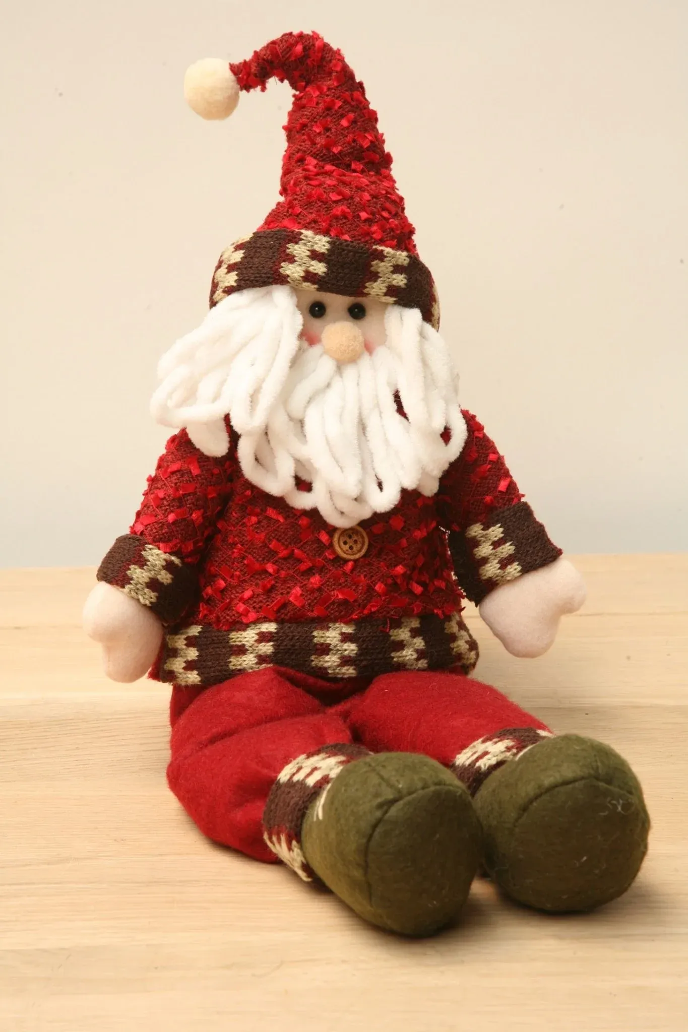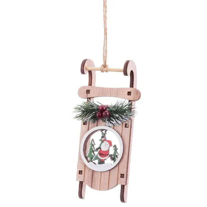 Colgante navideño con forma de ciervo fabricado en madera con motivo de un jersey en color rojo con rayas blancas.