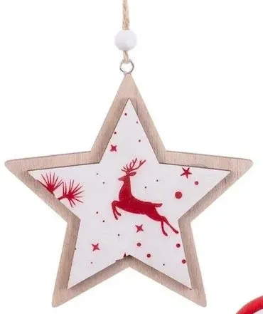 Colgantes navideños figuras Christmas fabricadas en madera con tres formas a elegir: árbol, estrella y corazón.