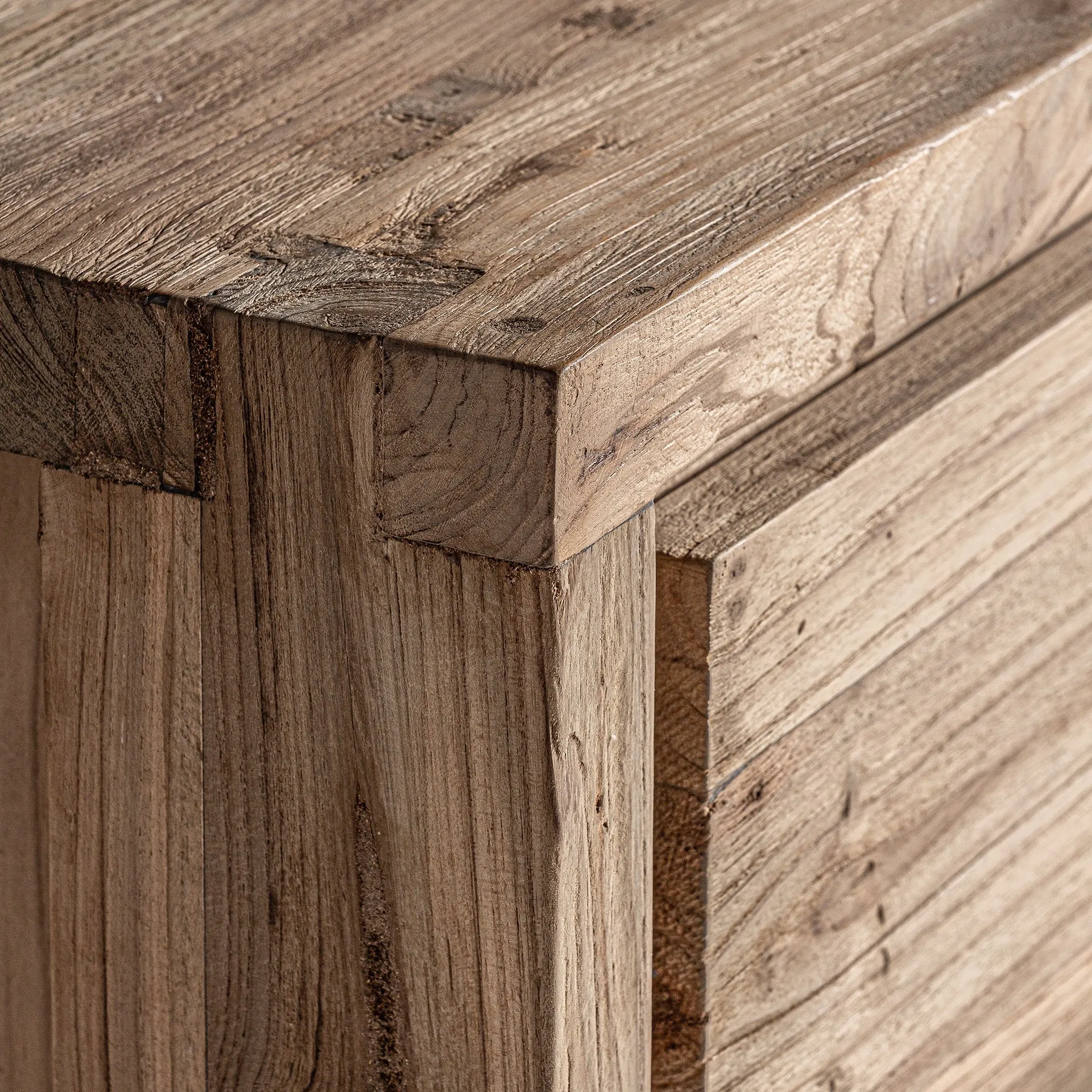 Cómoda de seis cajones fabricada en madera de teca reciclada en color natural, su construcción sólida y diseño simple la hacen perfecta para aquellos que buscan funcionalidad sin perder el encanto natural.