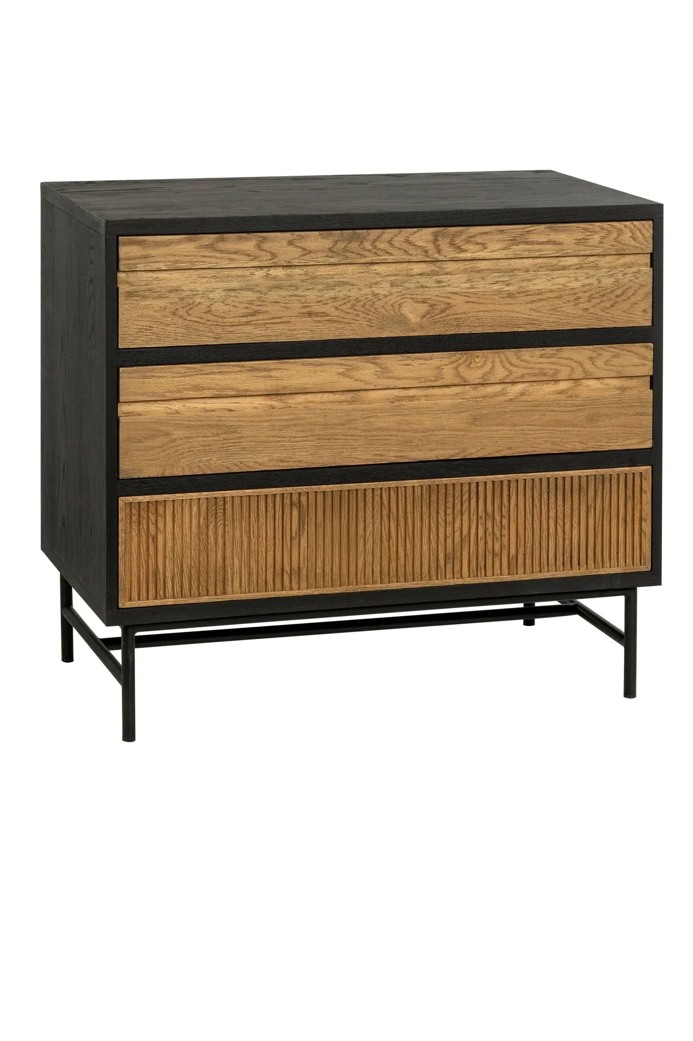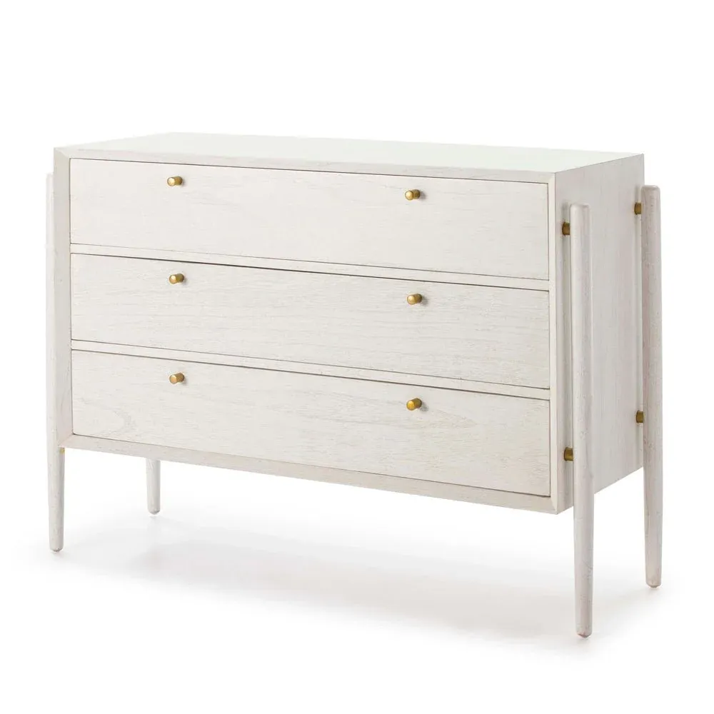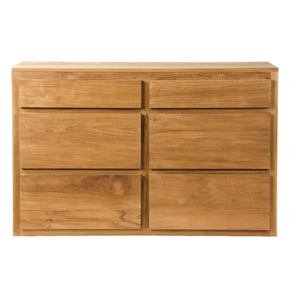 Cómoda de madera de teca maciza en color natural compuesta por un módulo con 6 cajones: 2 cajones pequeños y 4 cajones grandes. No requiere montaje.